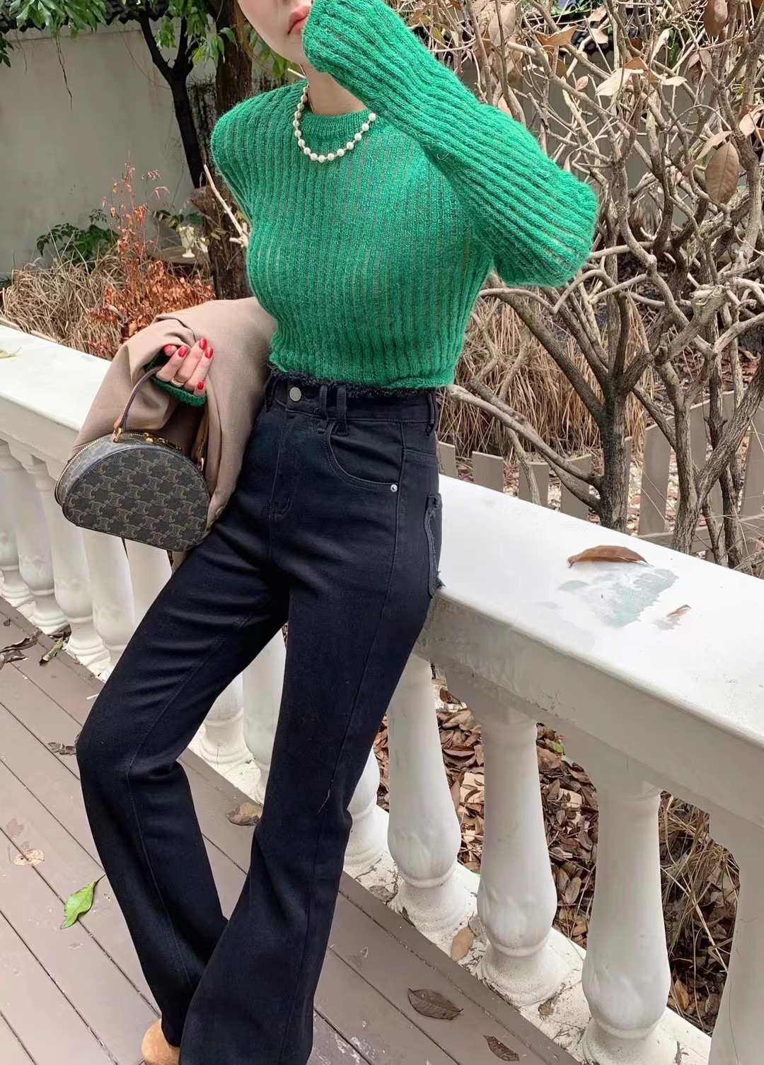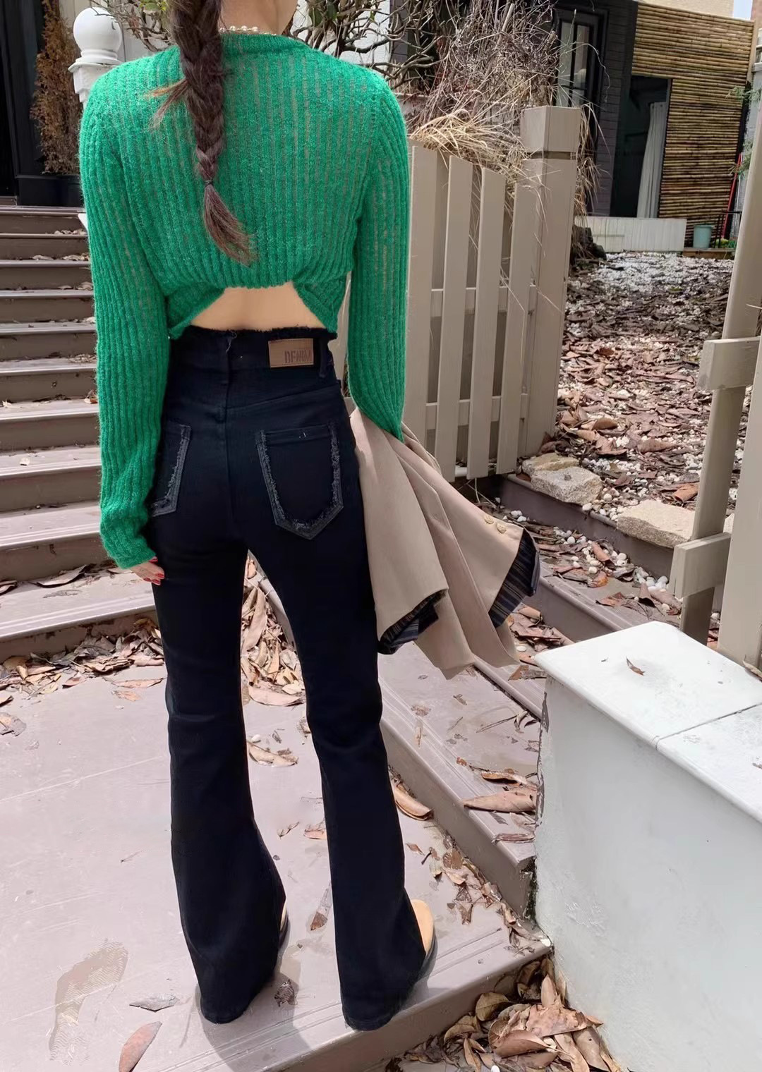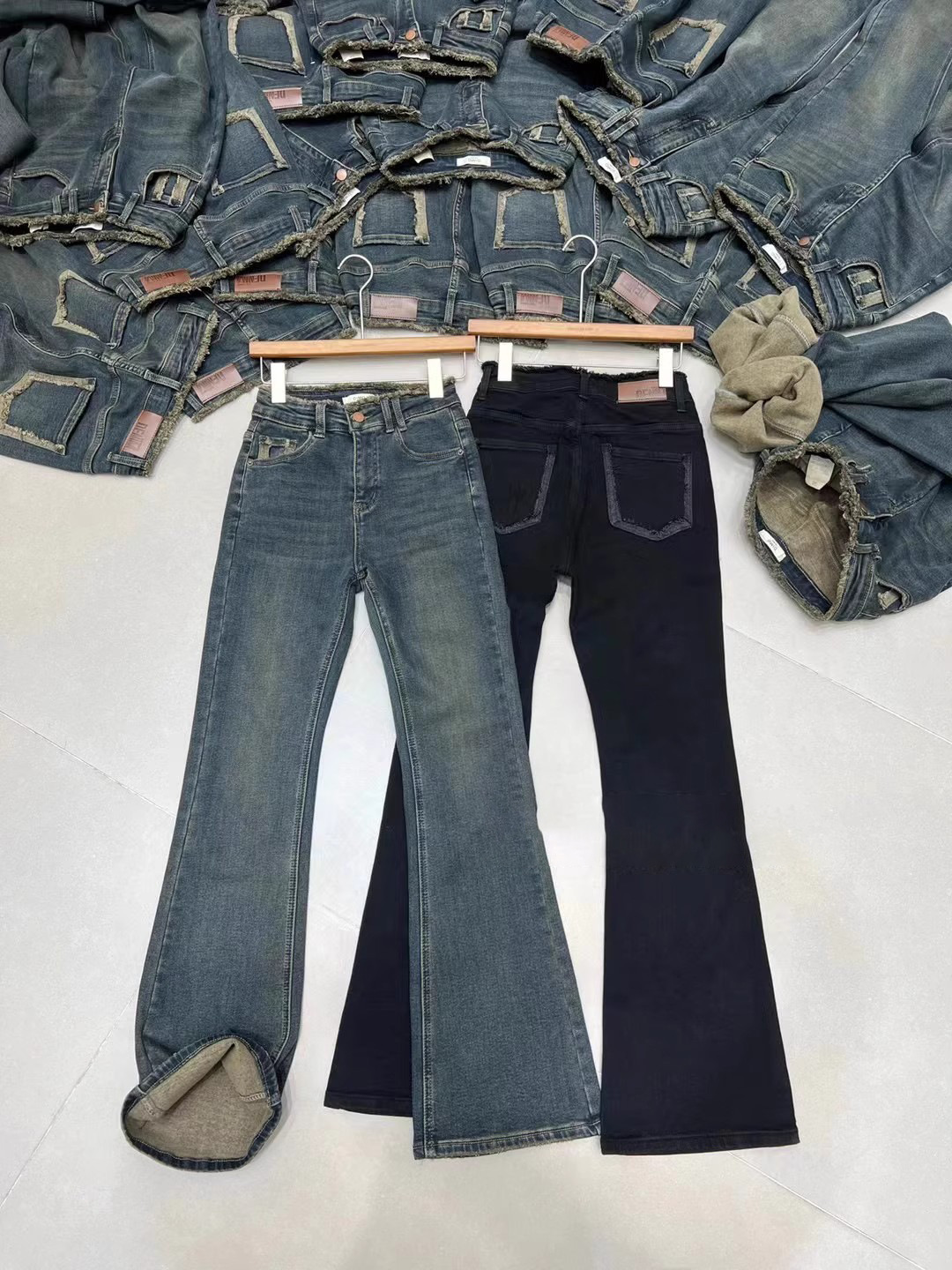 2024 년 봄에 여성을위한 밝은 색상의 하이 웨이스트 모피 엣지 마이크로 청바지 새로운 디자인 슬림 핏 슬리밍 바닥 길이 바지스토어 가기