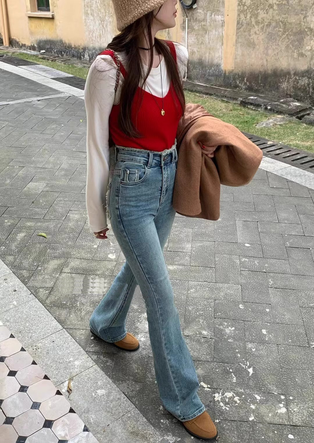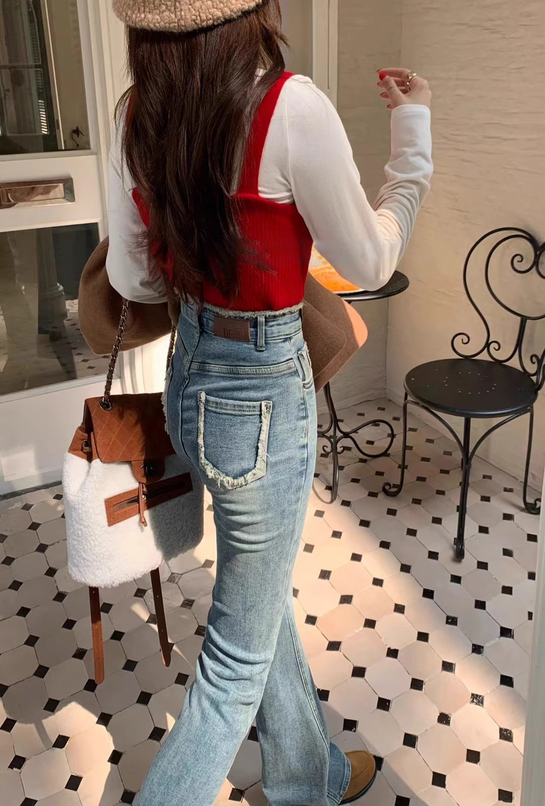 2024 년 봄에 여성을위한 밝은 색상의 하이 웨이스트 모피 엣지 마이크로 청바지 새로운 디자인 슬림 핏 슬리밍 바닥 길이 바지