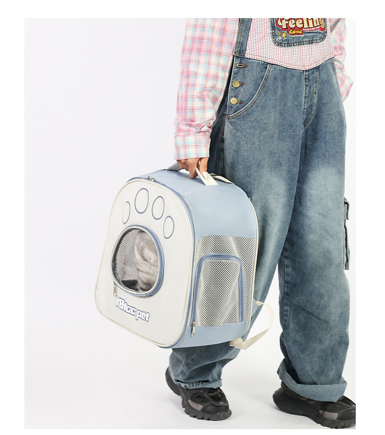 Yue Bai 토끼 고양이 가방 나가는 휴대용 고양이 가방 더블 어깨 애완 동물 투명 가방 여름 대용량 고양이 접이식 가방