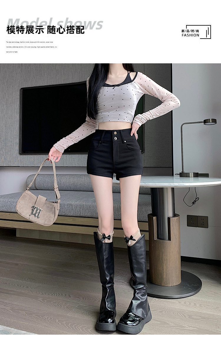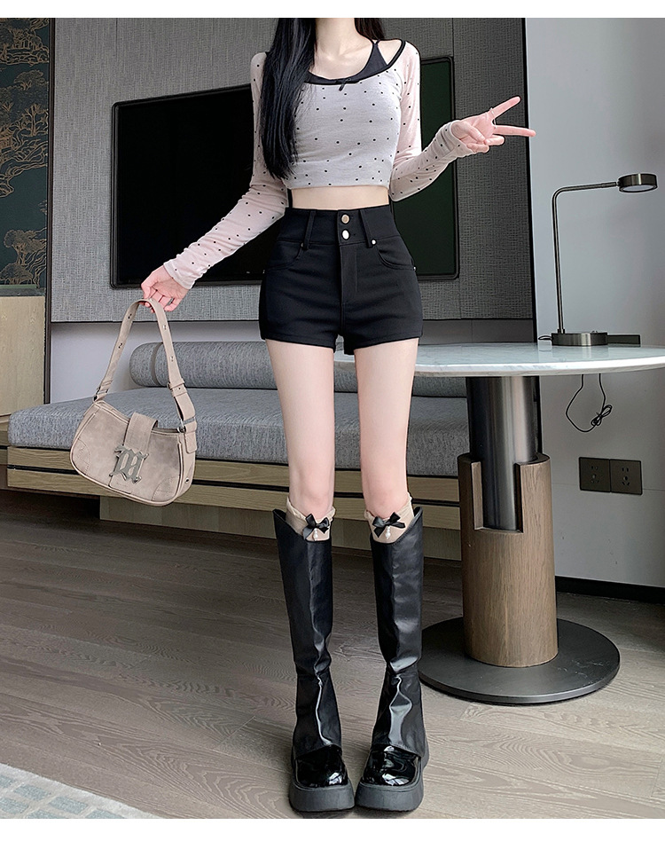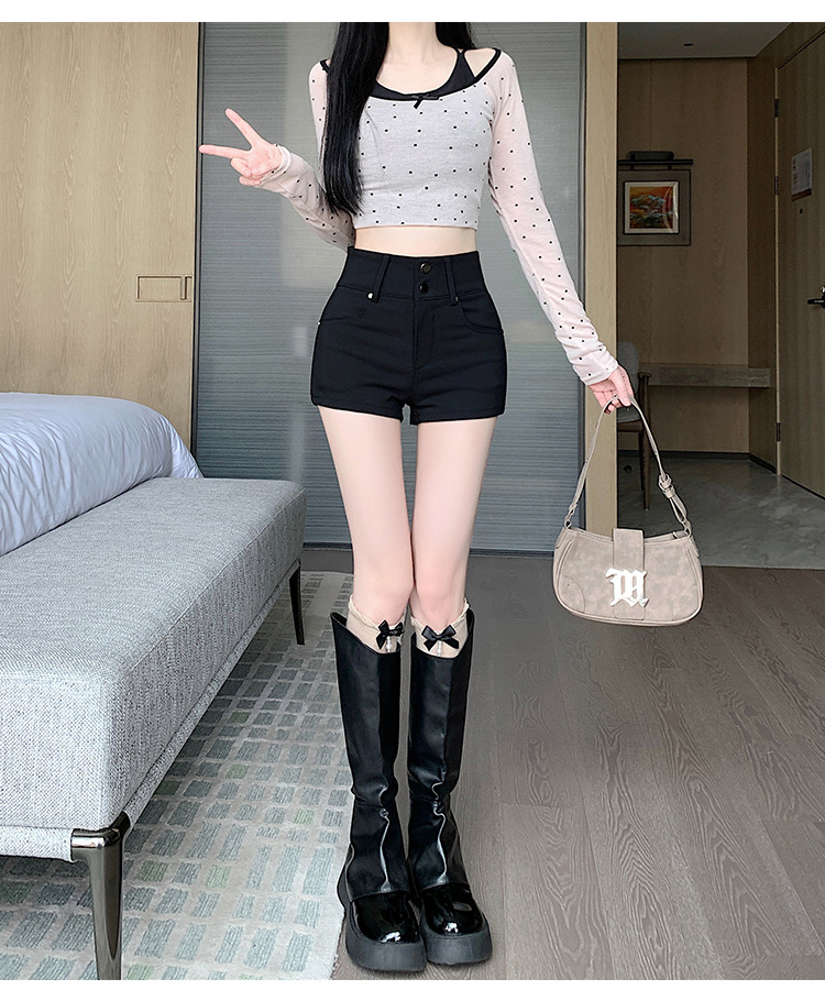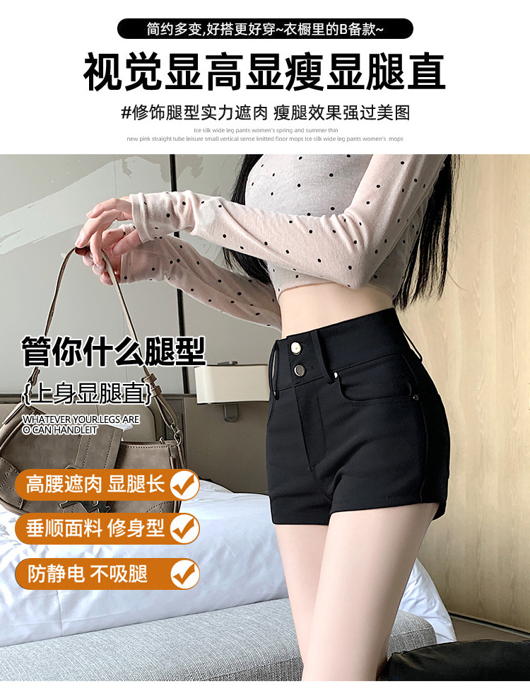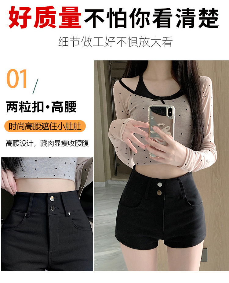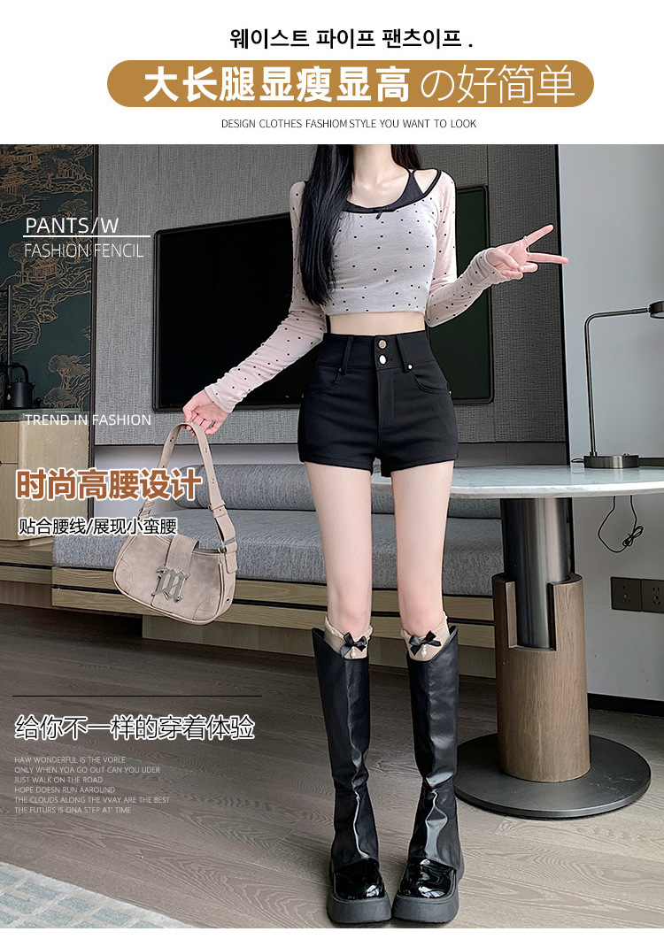 블랙 세트 반바지 여성 여름 2025 새로운 스타일 아우터 핫 팬츠 핫 걸스 하이 웨이스트 슬리밍 타이트베이스 부츠 여성용 바지스토어 가기