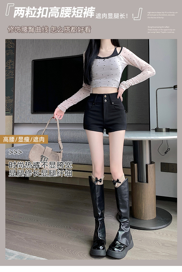 블랙 세트 반바지 여성 여름 2025 새로운 스타일 아우터 핫 팬츠 핫 걸스 하이 웨이스트 슬리밍 타이트베이스 부츠 여성용 바지