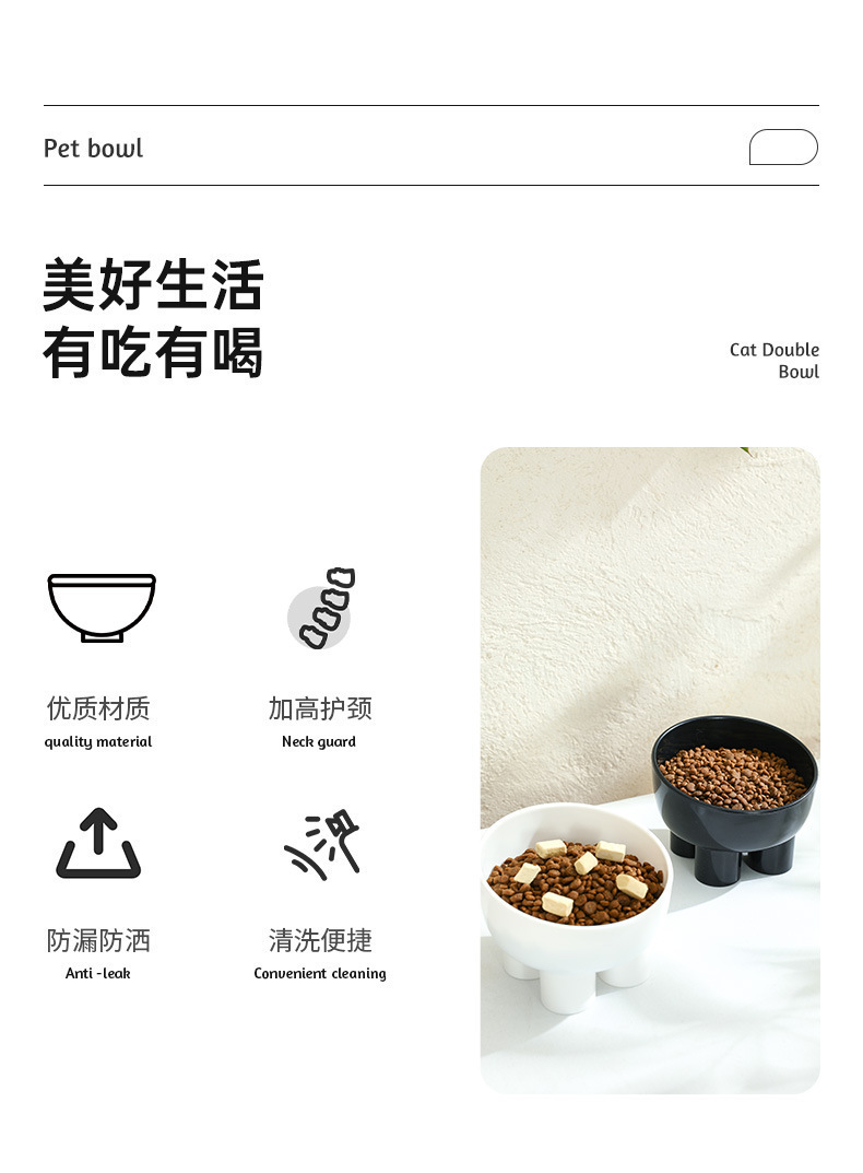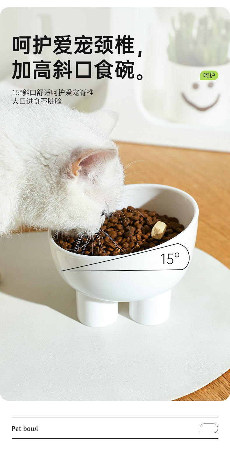 [품질과 가격 선택] 고양이와 개가 마시는 물, 대구경 고양이 사료 밥그릇, 넘어짐 방지 목 보호 그릇 14*10cm스토어 가기