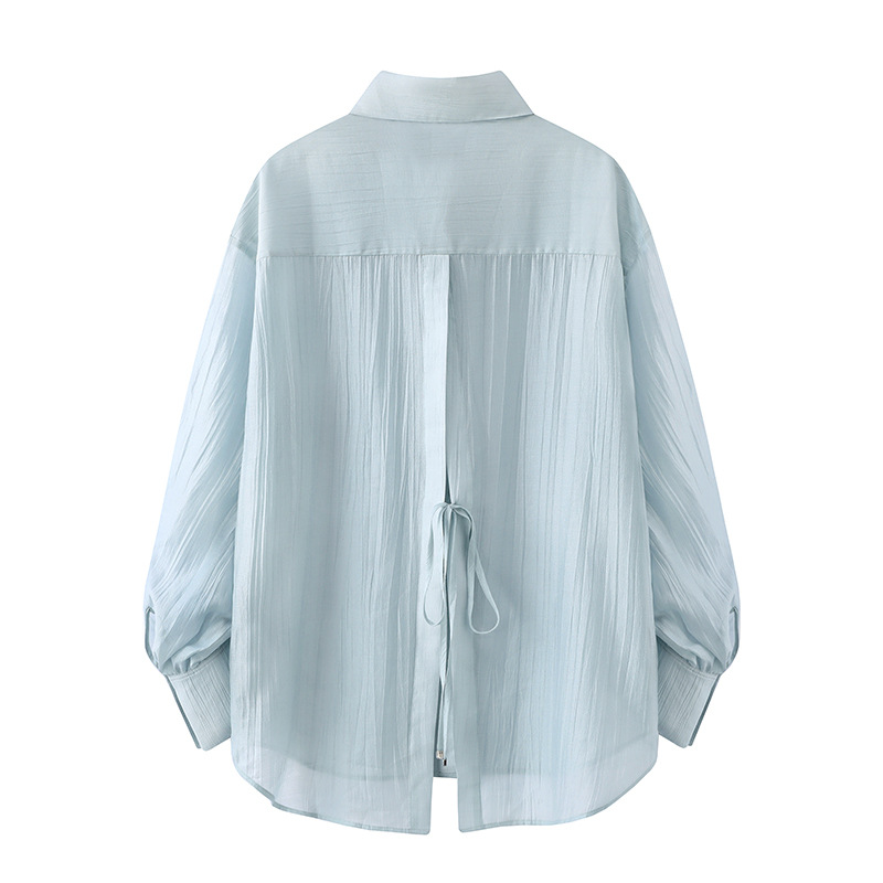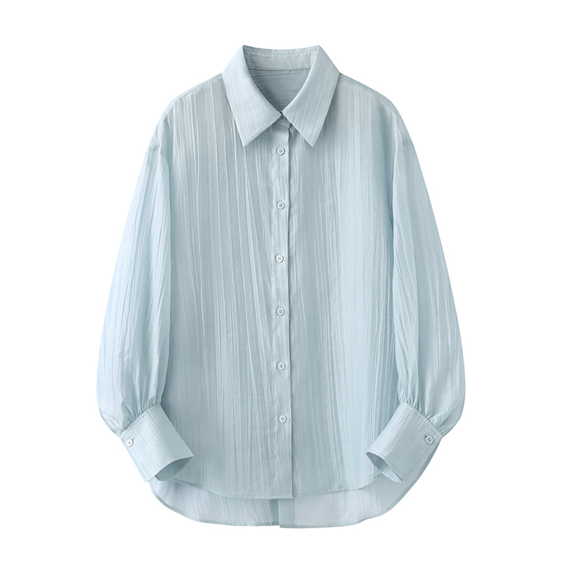 여자 2025 년 여름 새로운 패션 올매치 느슨한 긴팔 선 스크린 얇은 셔츠