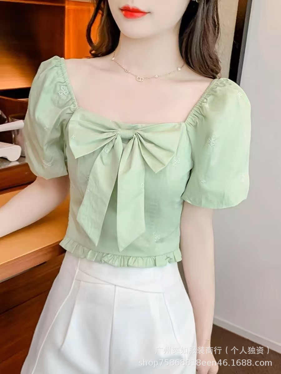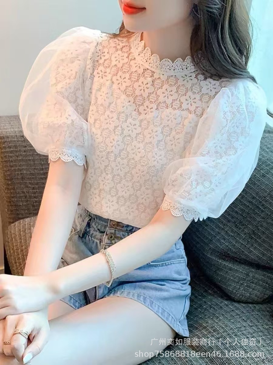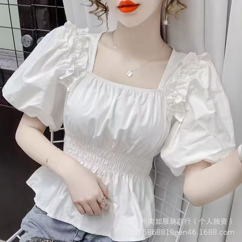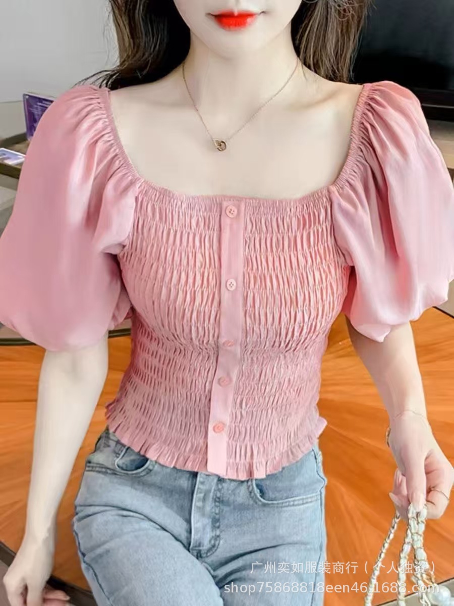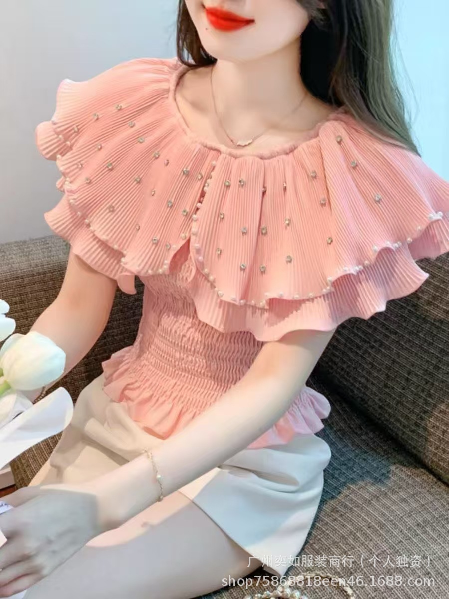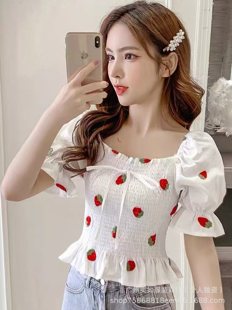 여성을위한 반팔 쉬폰 셔츠 티셔츠 2025 여름 새로운 프랑스 스타일 꽃 짧은 탑 기타 도매스토어 가기
