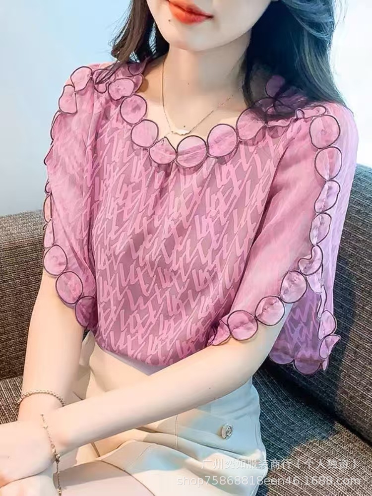 여성을위한 반팔 쉬폰 셔츠 티셔츠 2025 여름 새로운 프랑스 스타일 꽃 짧은 탑 기타 도매