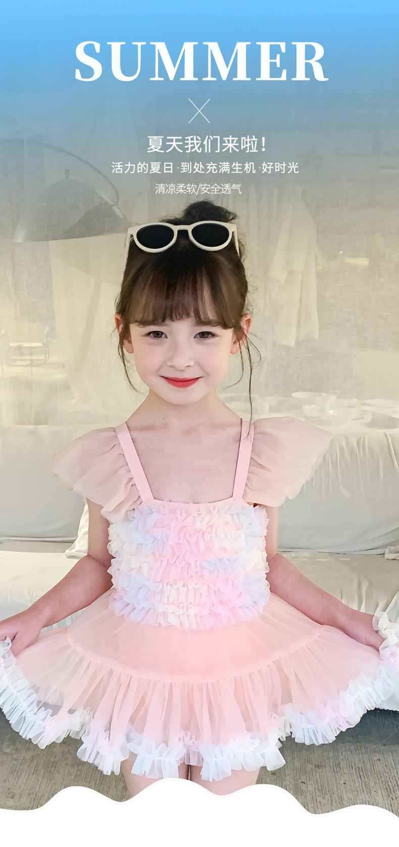 2025 선원 아기 민소매 소녀 수영복 원피스 공주 드레스 귀여운 중소형 아기 여름 수영복스토어 가기