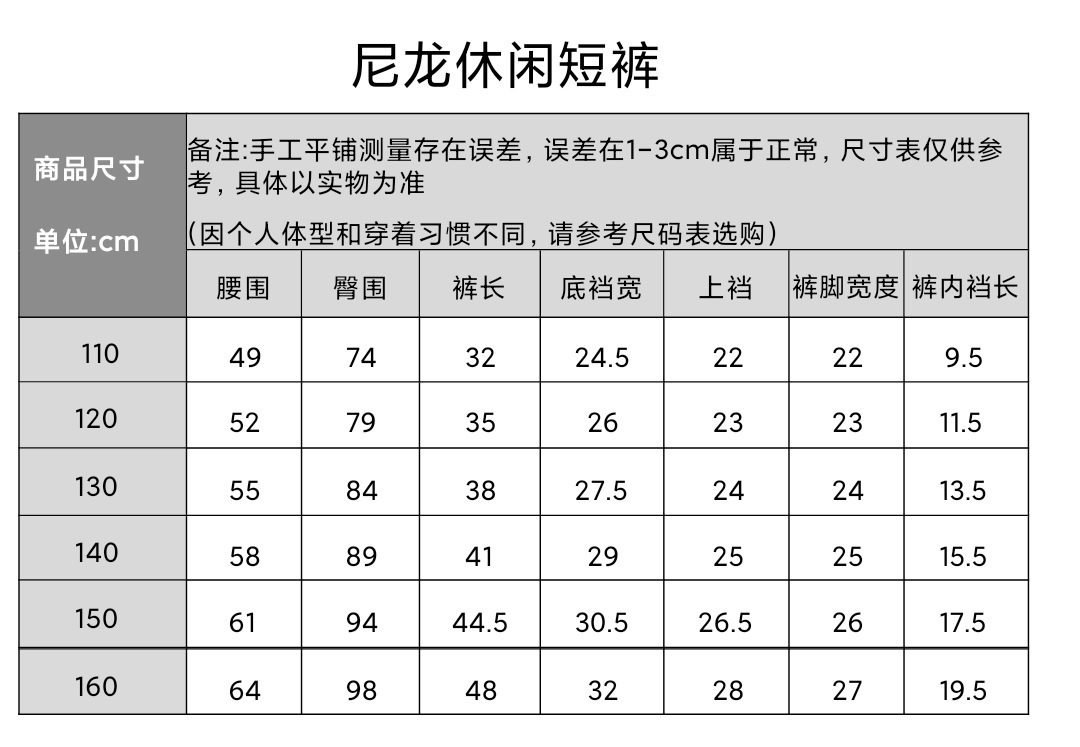 2025 여름 아동 의류 소년과 소녀 나일론 캐주얼 반바지 캐주얼 스포츠 패션 중간 바지 탄성 허리 474585