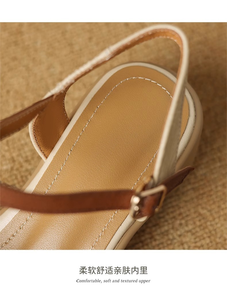 부드러운 가죽 한 단어 생선 입 샌들 여성 2025 년 새 여름 로마 두꺼운 치마 신발 신발과 신발