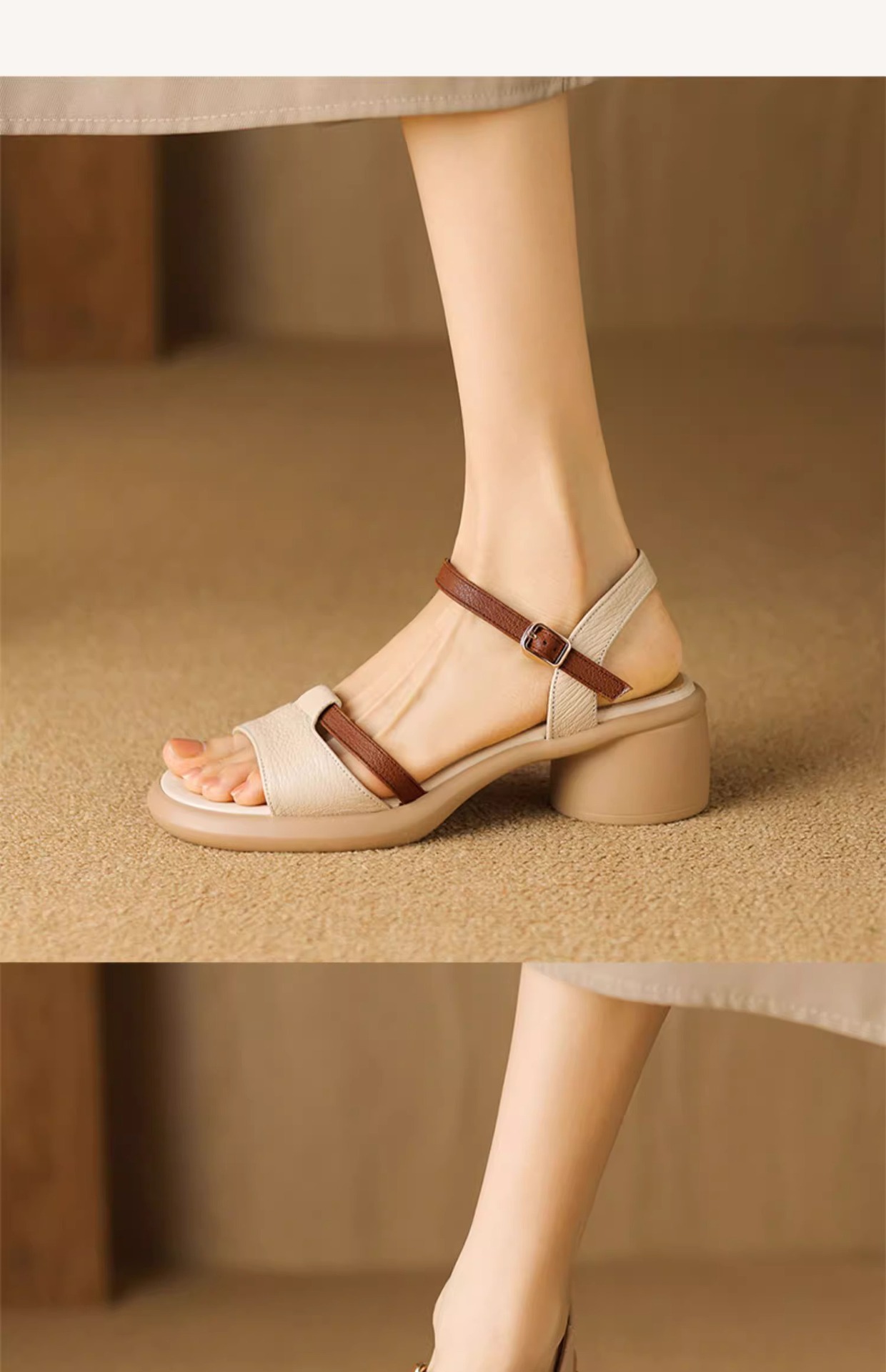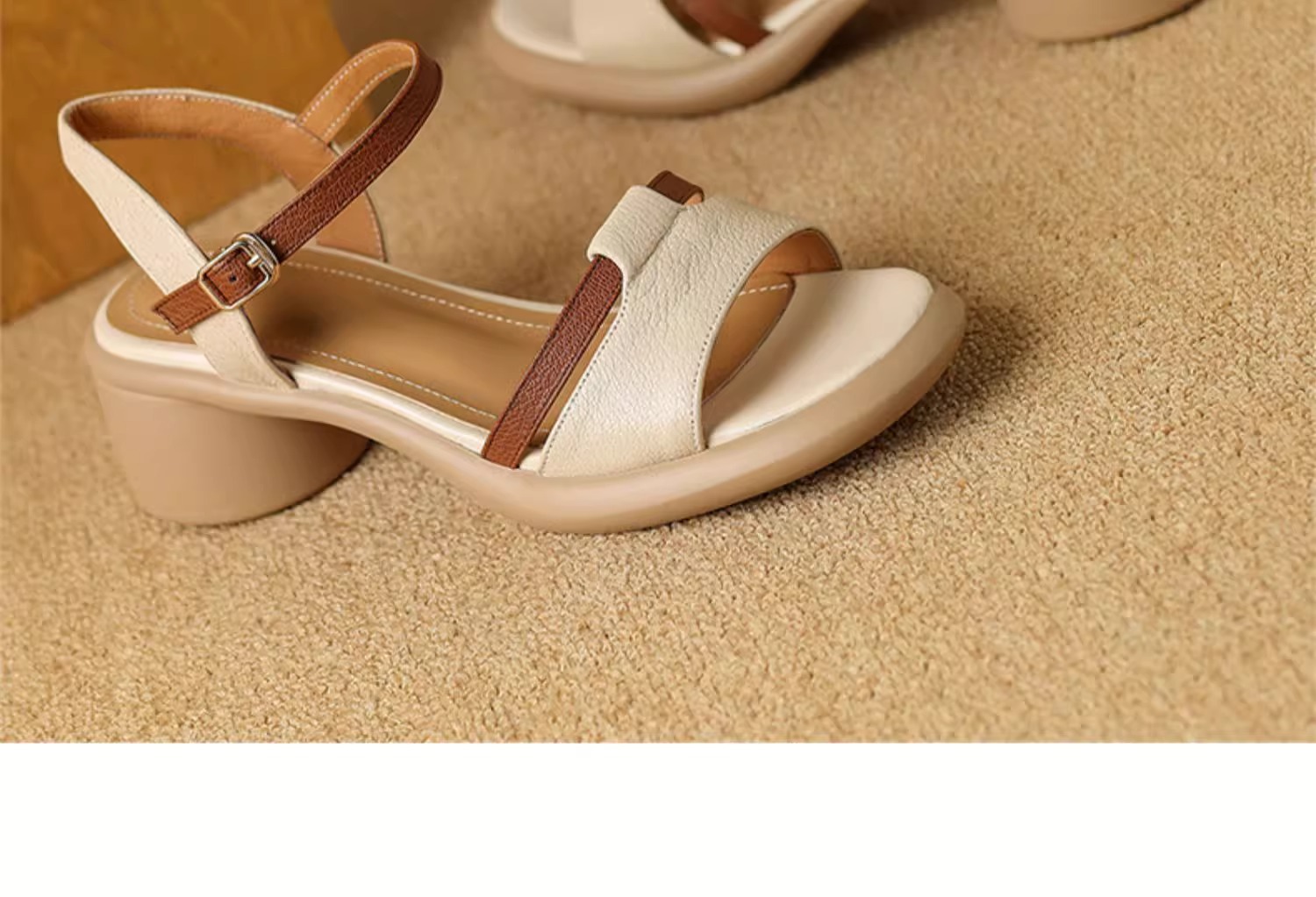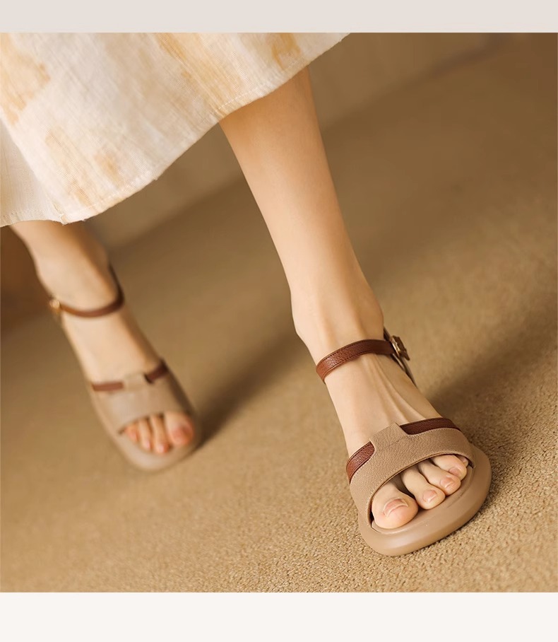 부드러운 가죽 한 단어 생선 입 샌들 여성 2025 년 새 여름 로마 두꺼운 치마 신발 신발과 신발스토어 가기