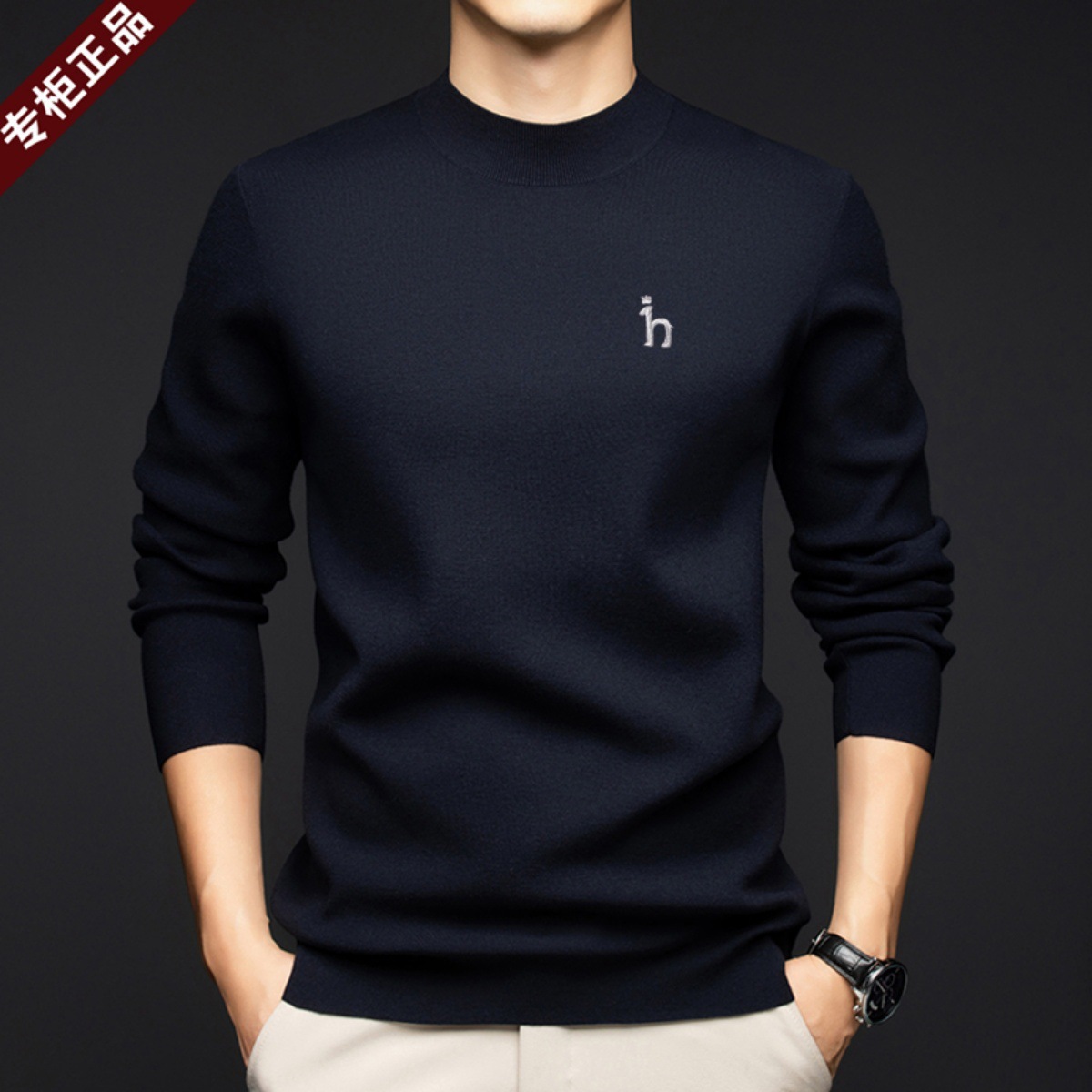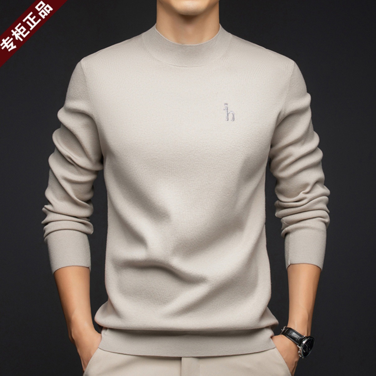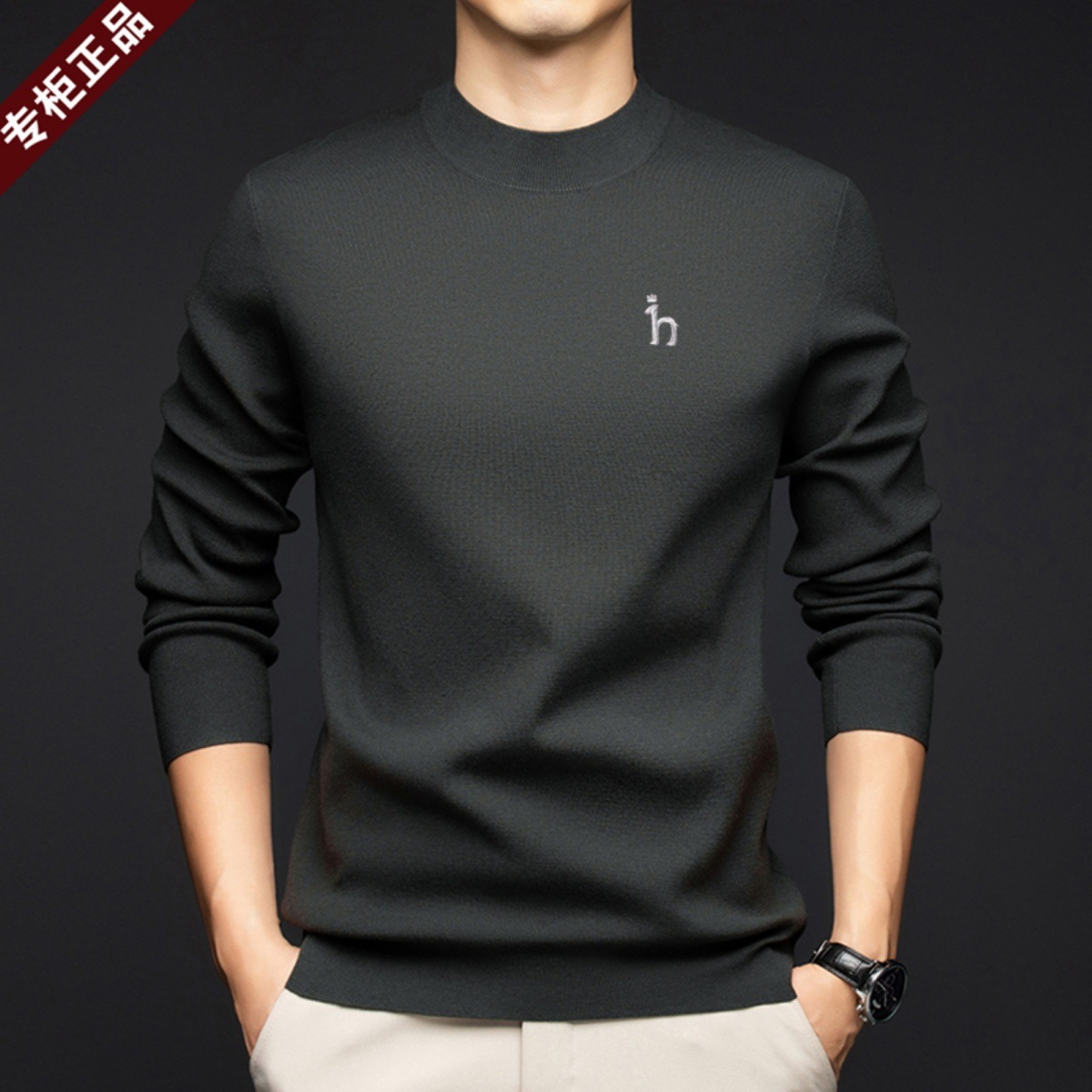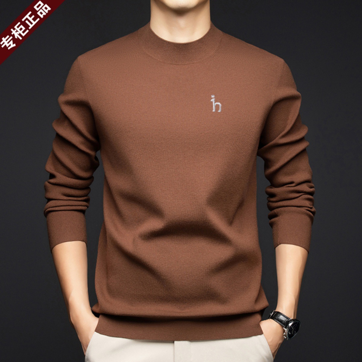 Hazzys Haggis 남성용 하프 하이 라운드 넥 울 스웨터 캐주얼 노 아이언 주름 방지 바닥 스웨터 트렌디 460g스토어 가기
