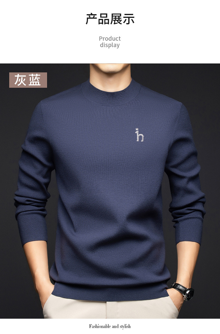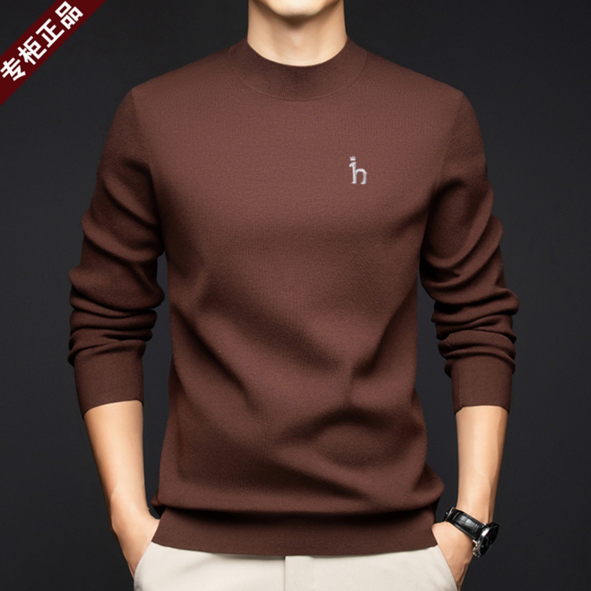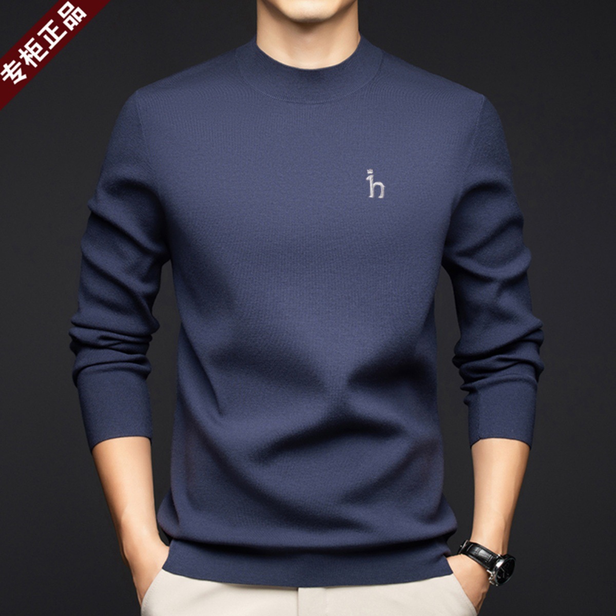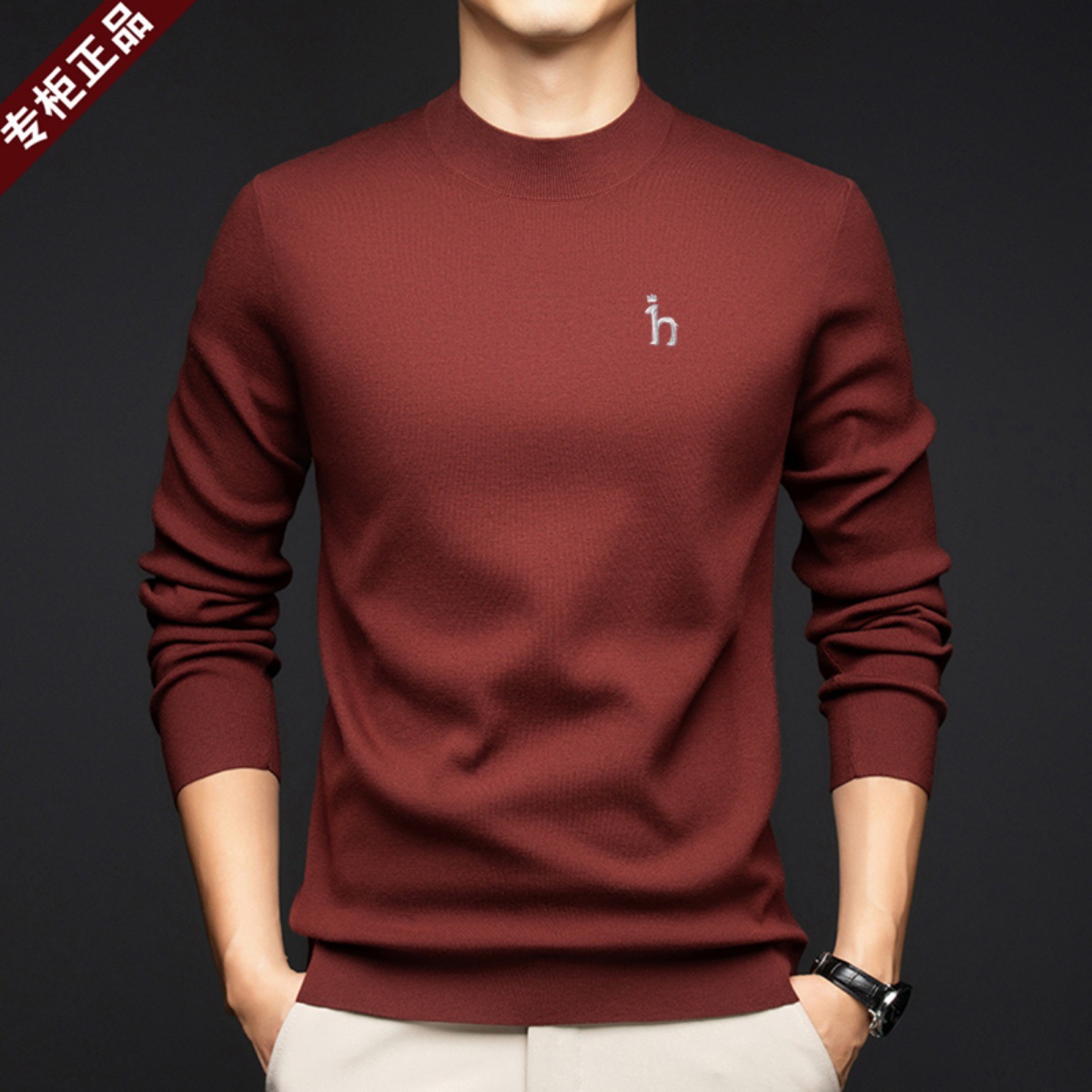 Hazzys Haggis 남성용 하프 하이 라운드 넥 울 스웨터 캐주얼 노 아이언 주름 방지 바닥 스웨터 트렌디 460g스토어 가기