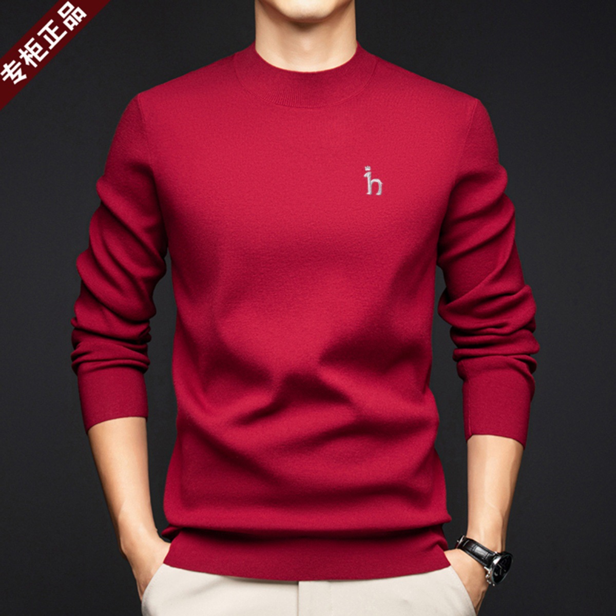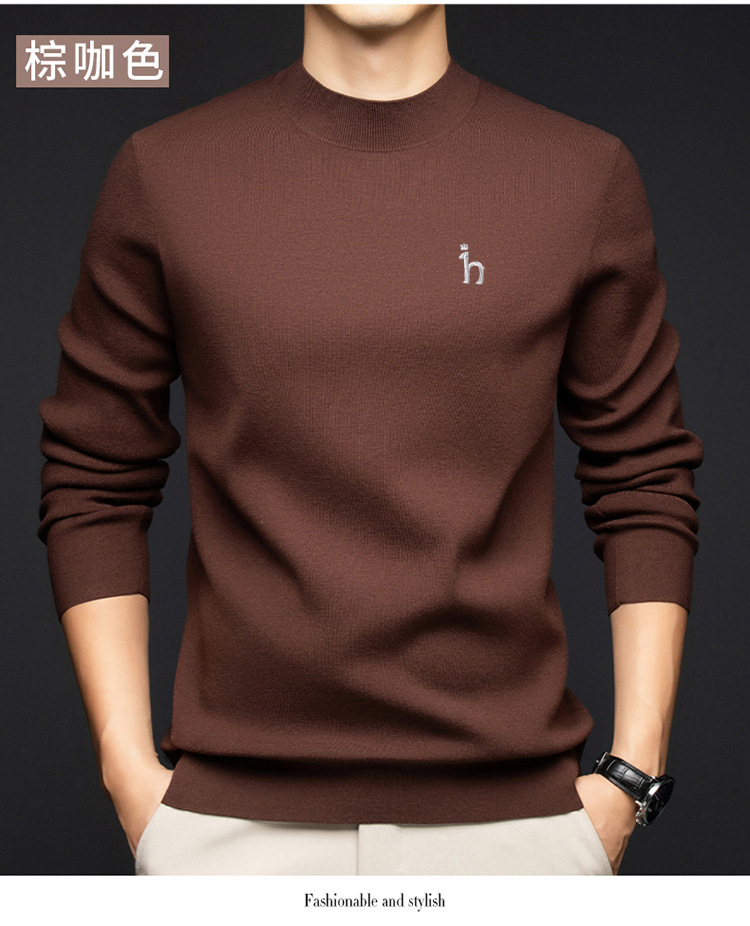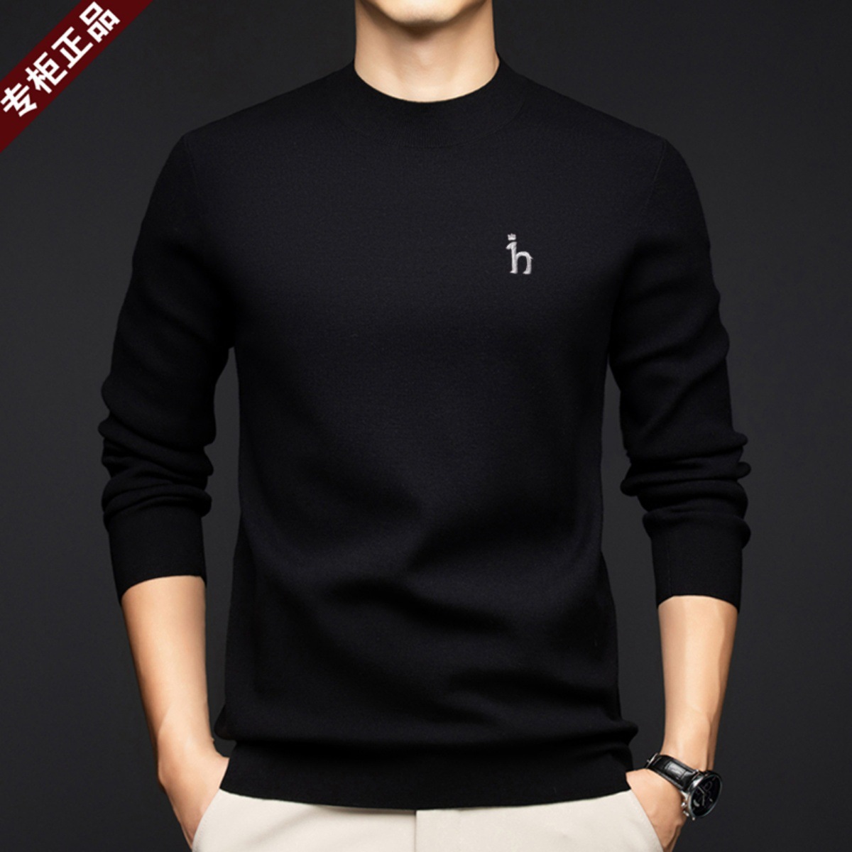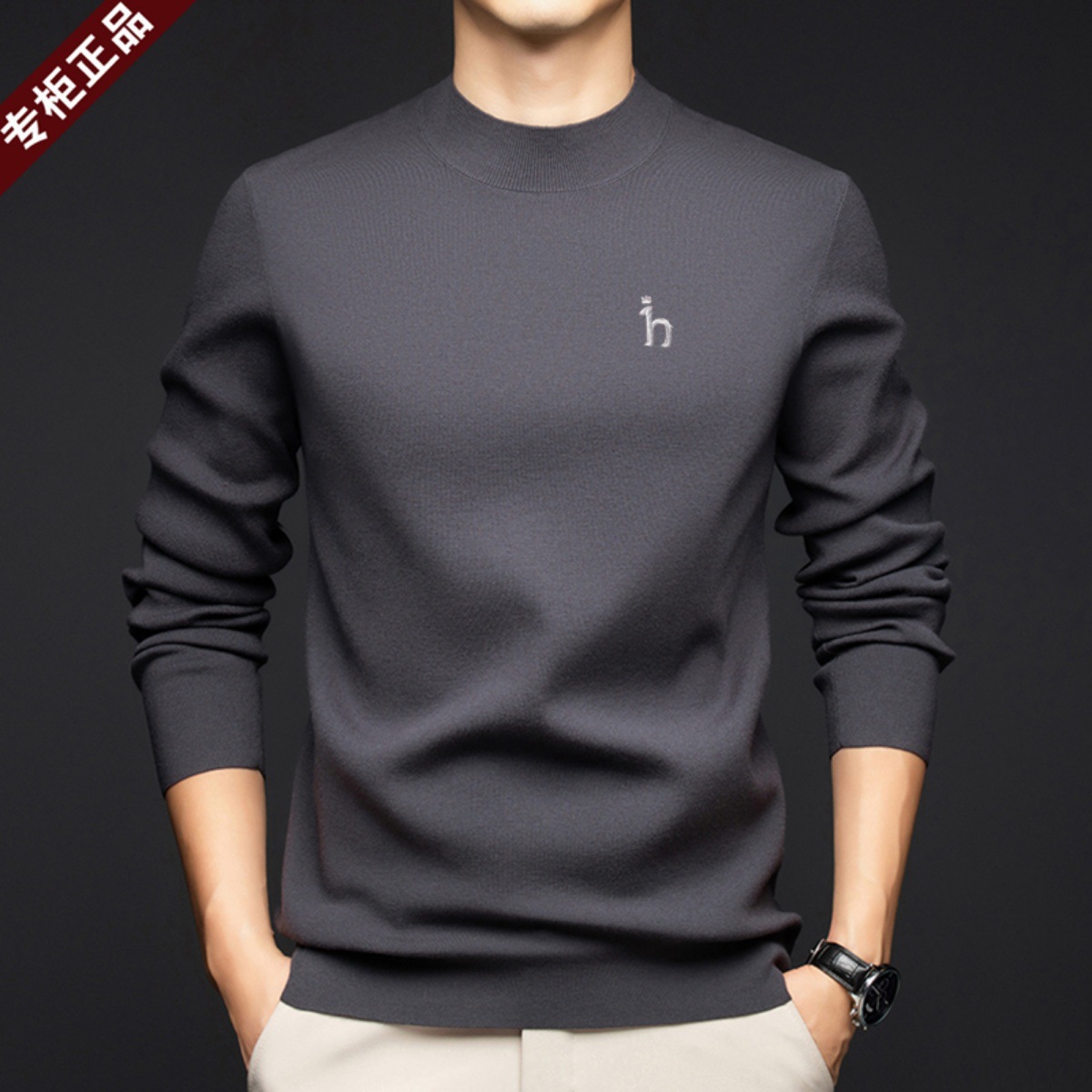 Hazzys Haggis 남성용 하프 하이 라운드 넥 울 스웨터 캐주얼 노 아이언 주름 방지 바닥 스웨터 트렌디 460g스토어 가기