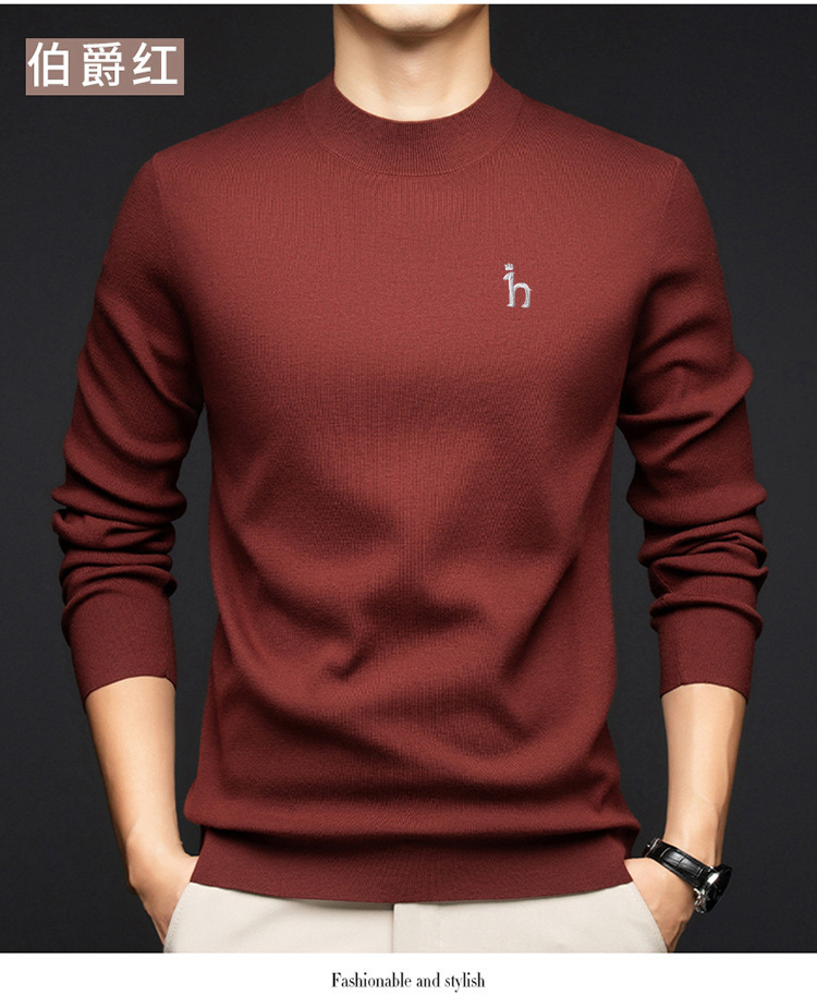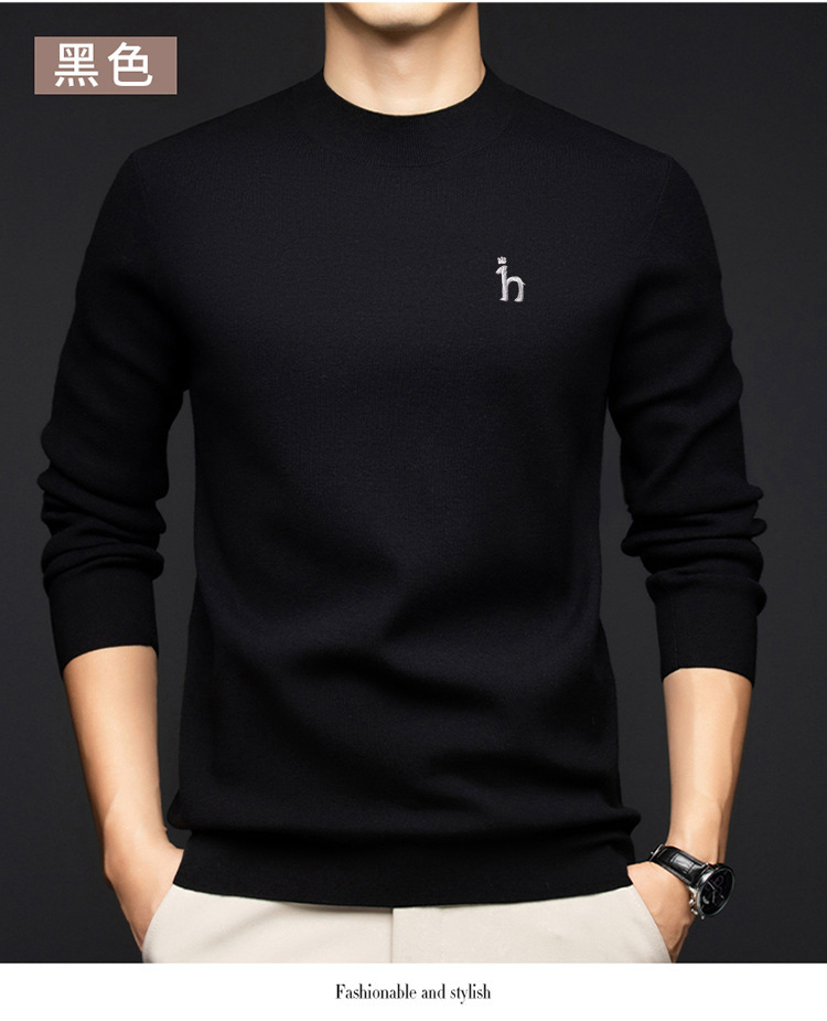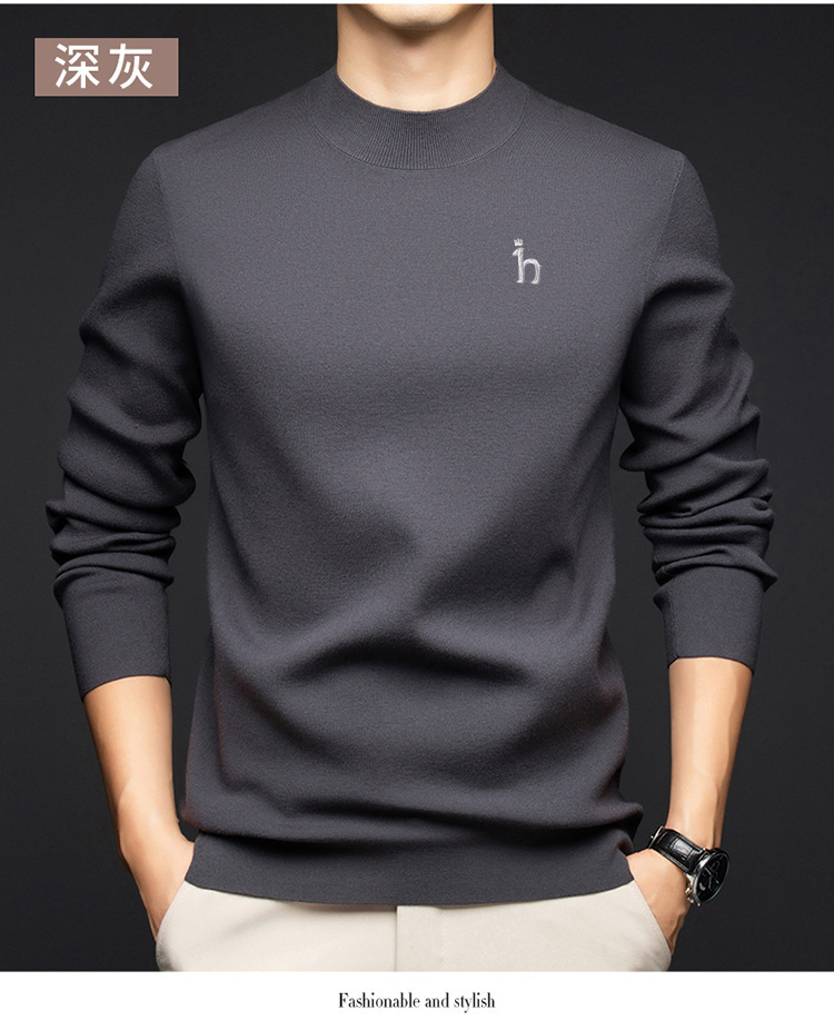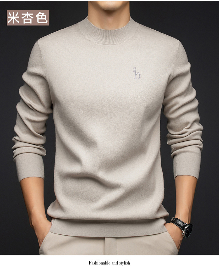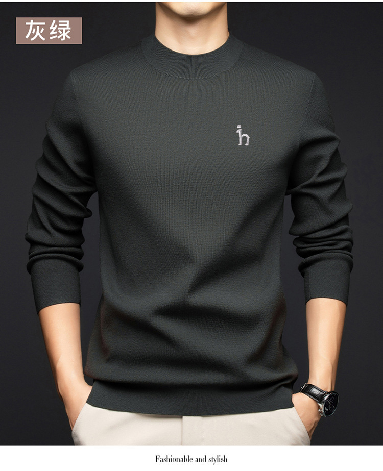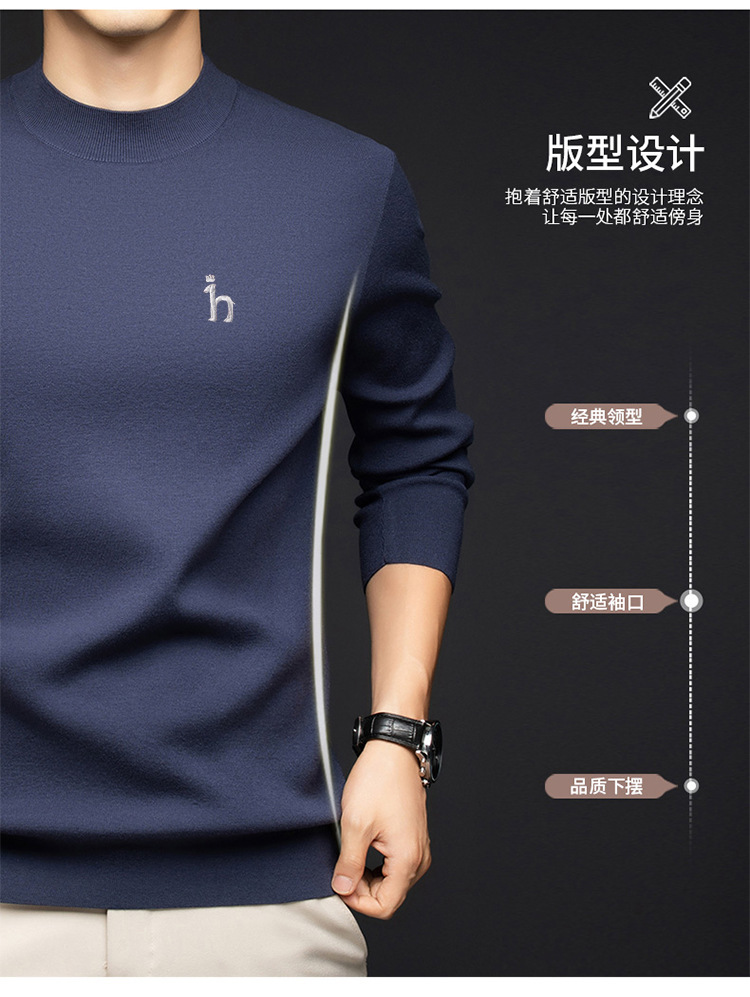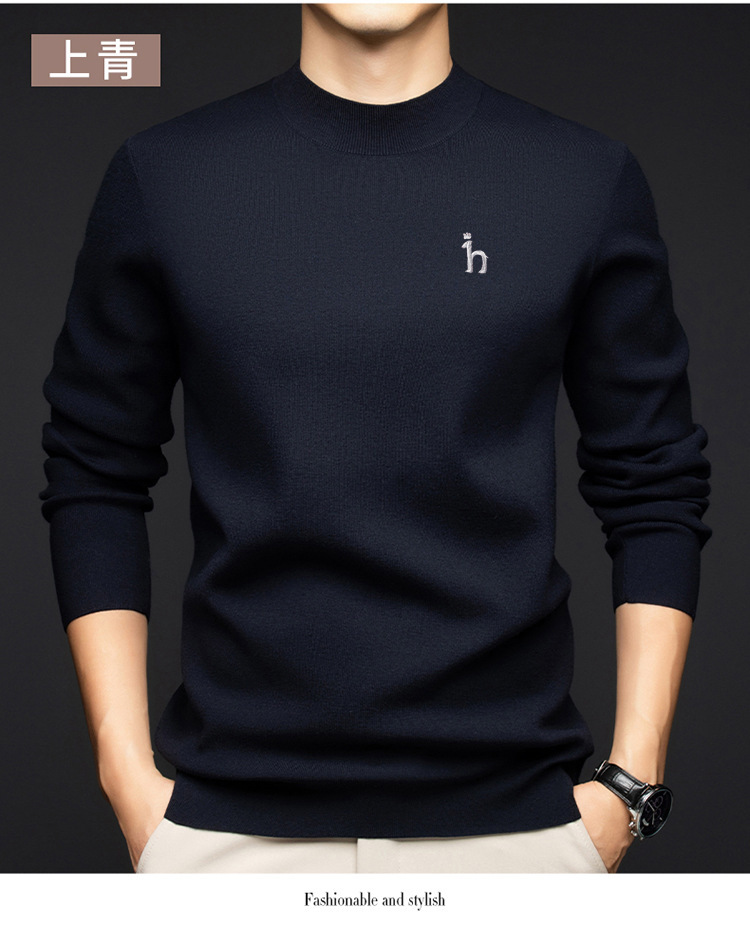 Hazzys Haggis 남성용 하프 하이 라운드 넥 울 스웨터 캐주얼 노 아이언 주름 방지 바닥 스웨터 트렌디 460g