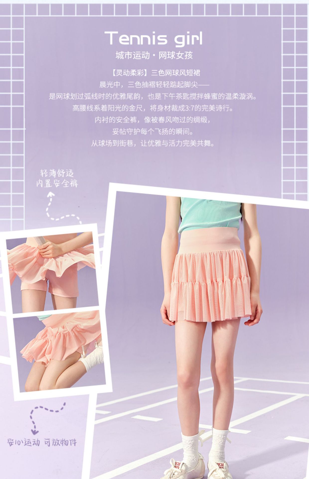 Amoy Town [스마트 소프트 컬러] 여자 스커트 여름 새로운 안티 라이트 테니스 스포츠 스커트 메쉬 짧은 치마 조수스토어 가기