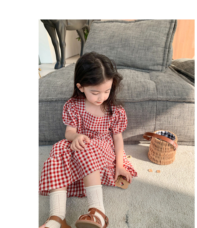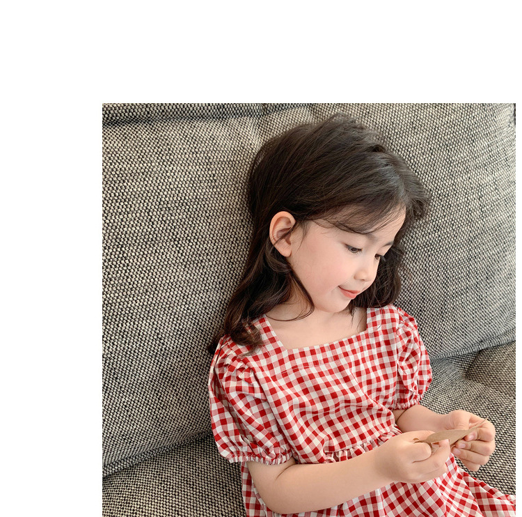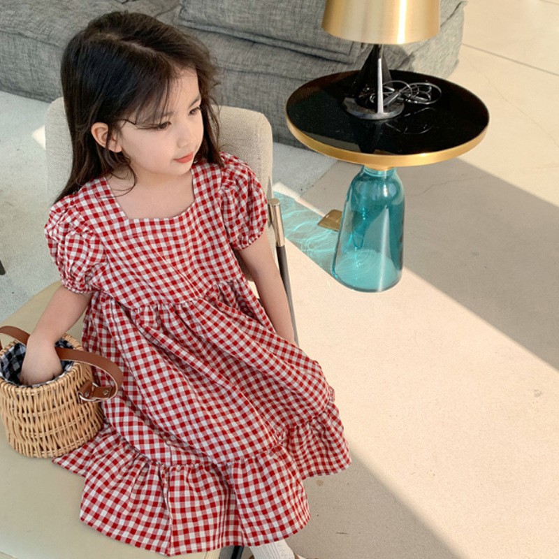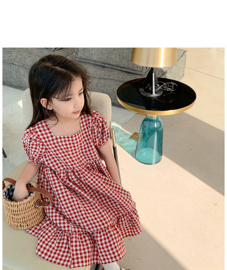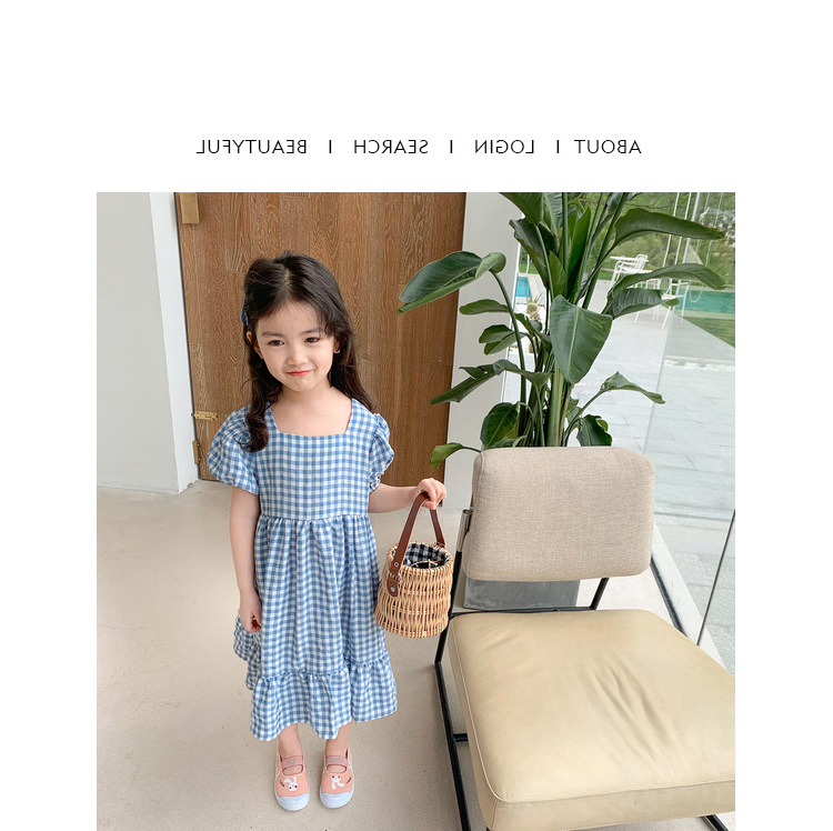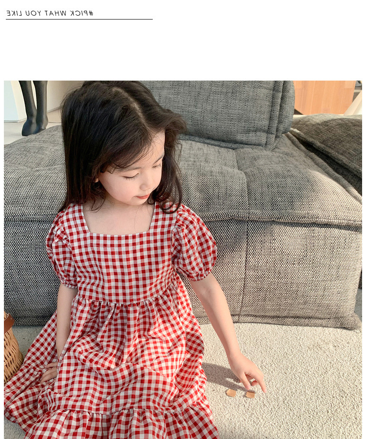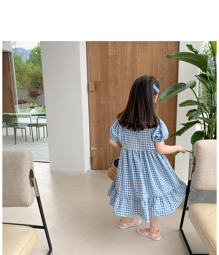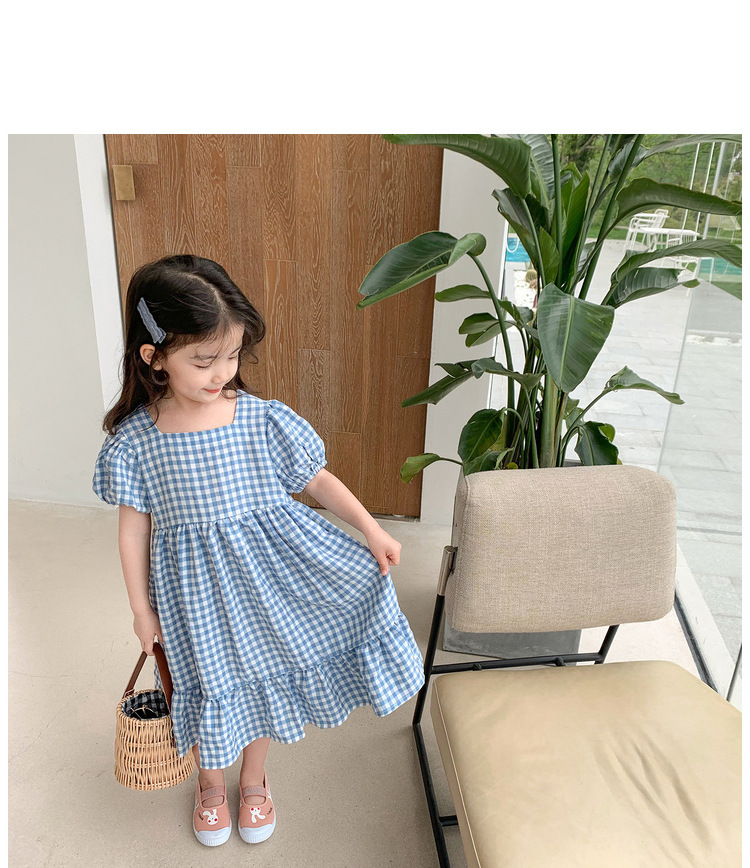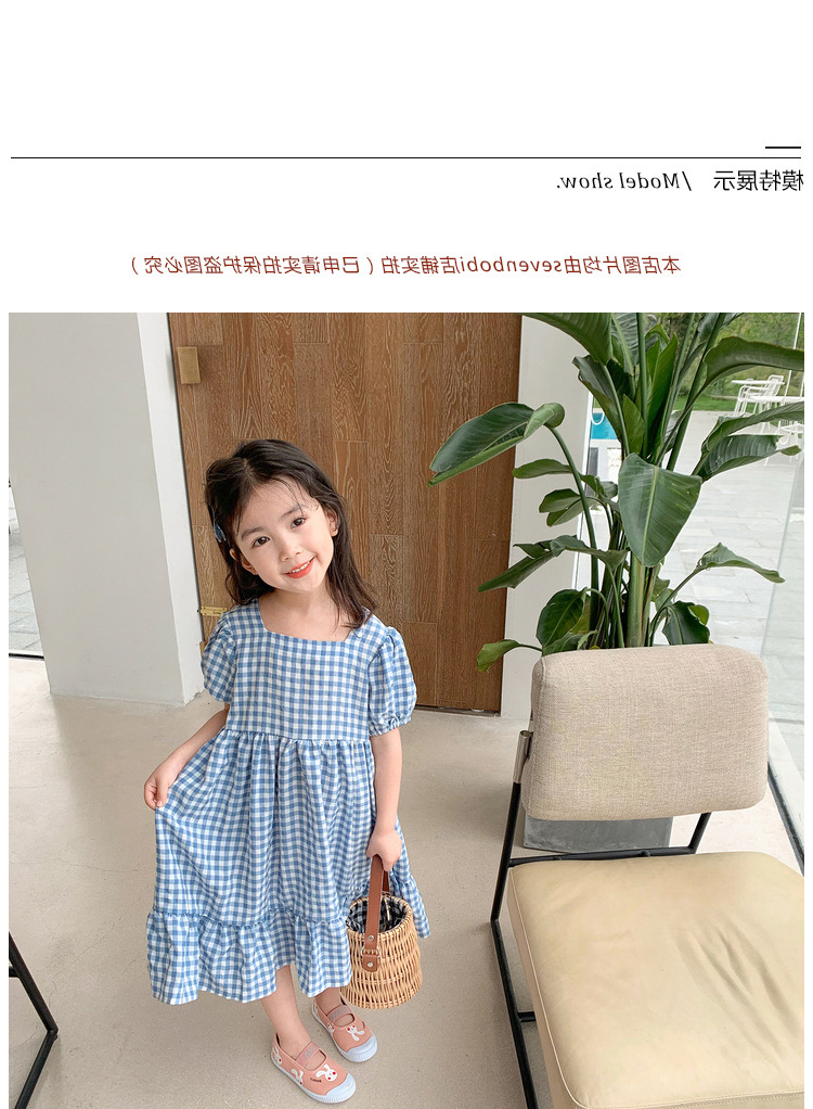 여자 캐주얼 패션 모리 격자 무늬 원피스 2024 여름 새로운 한국 스타일 외국인 스타일 베이비 스퀘어 칼라 롱 원피스스토어 가기
