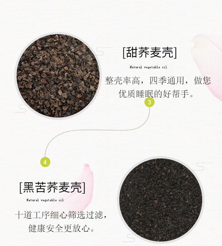 베개 커버, 베개 라이너 커버, 이중 순면 지퍼 암호화 어린이 및 성인 싱글 메밀 껍질 계수나무 콩 내부 가방
