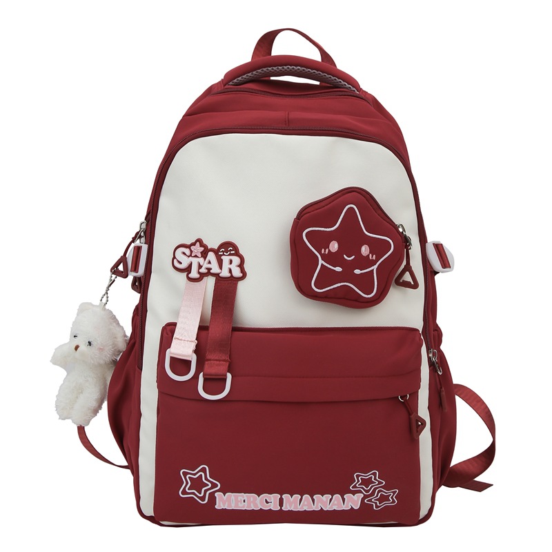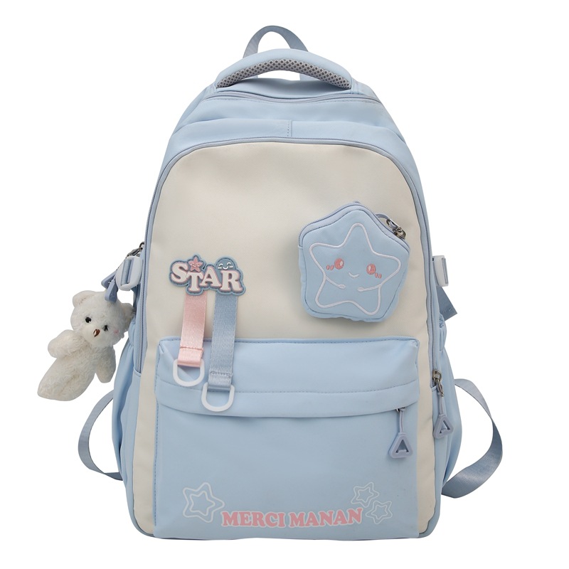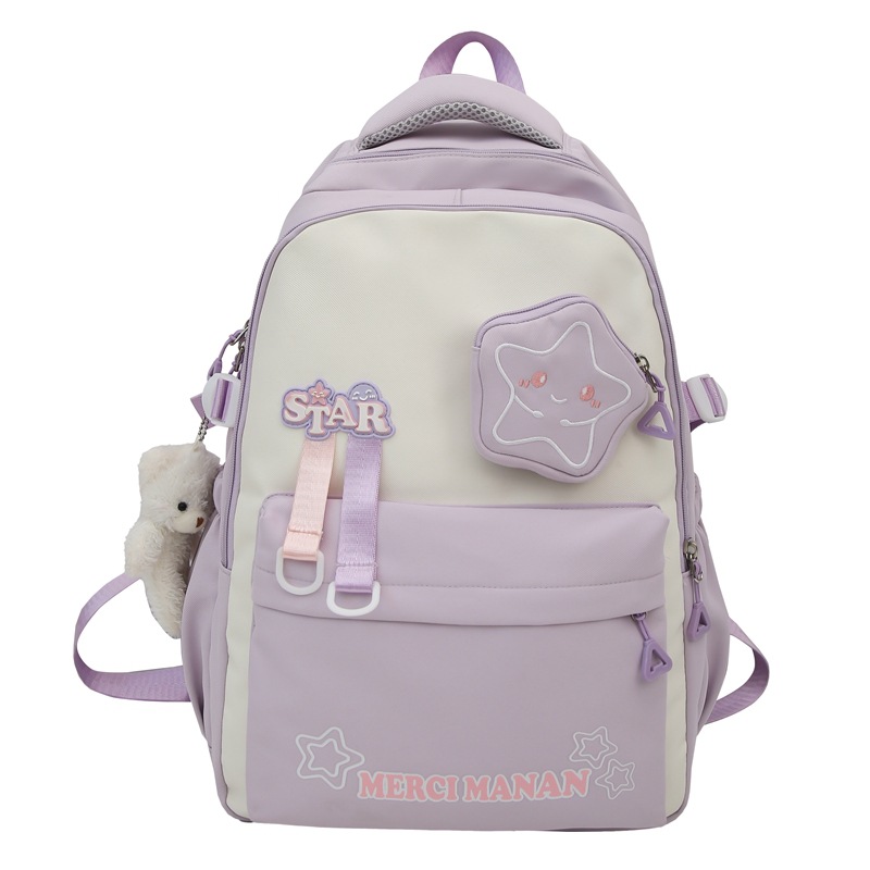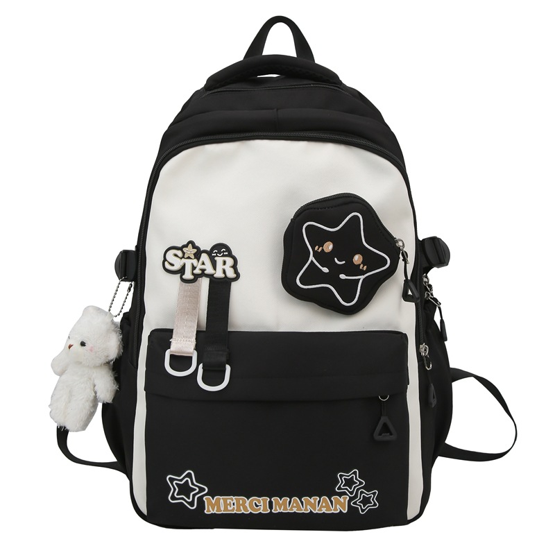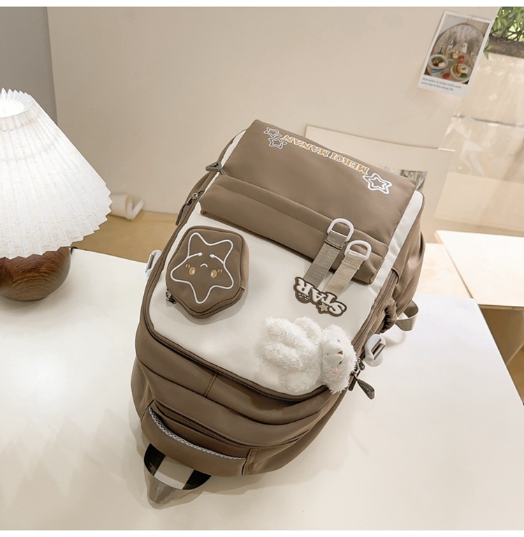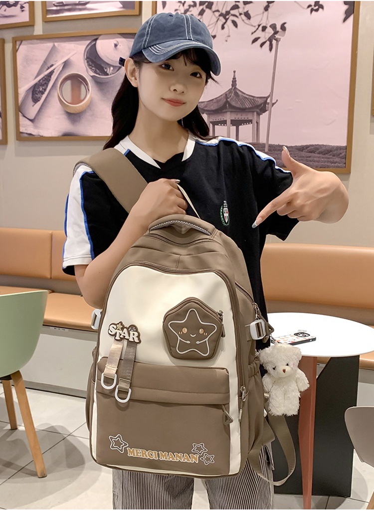 국경 새 패션 대비 컬러 스쿨백 대용량 중학생 경량 배낭 고등학교 대학생 배낭