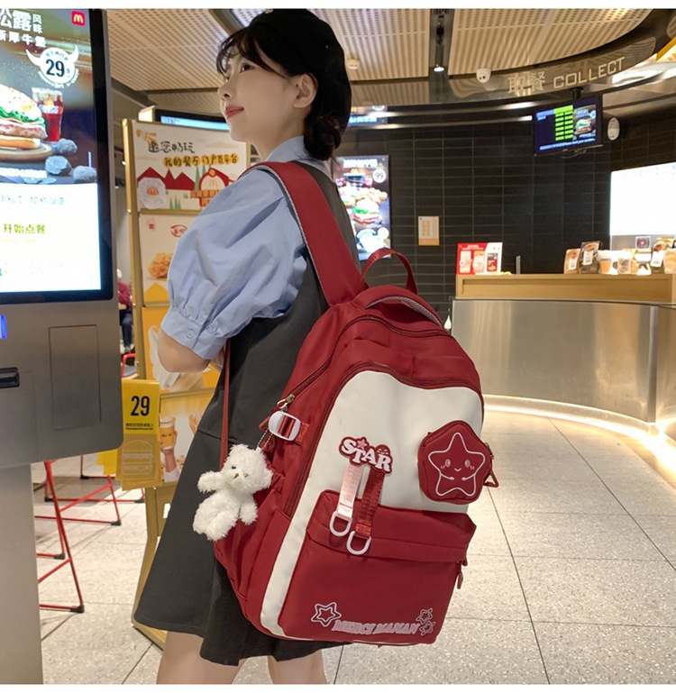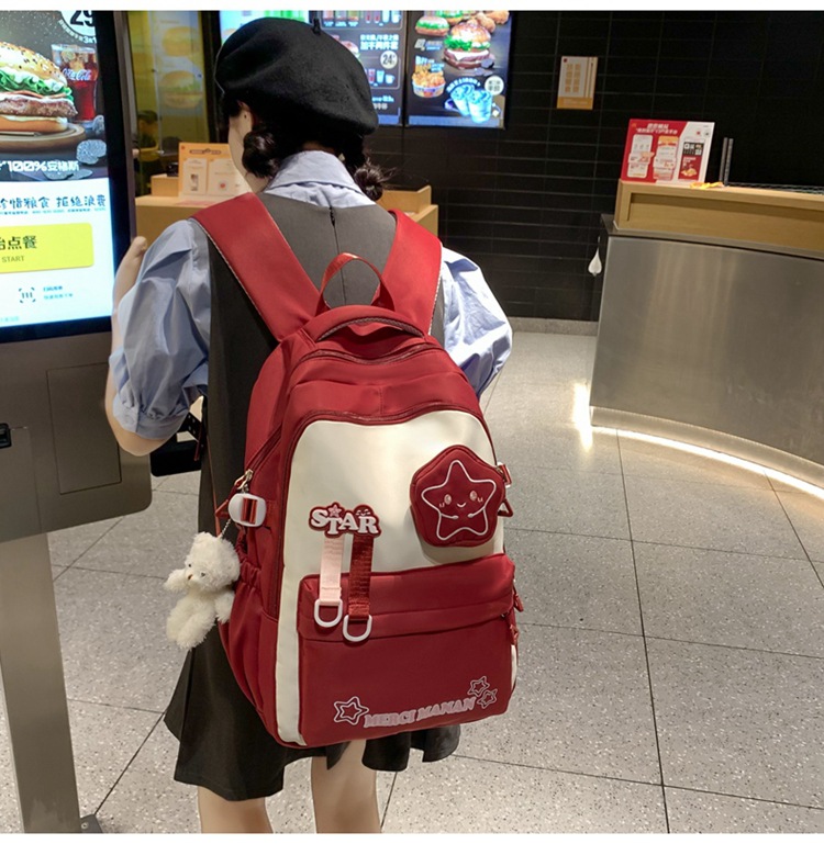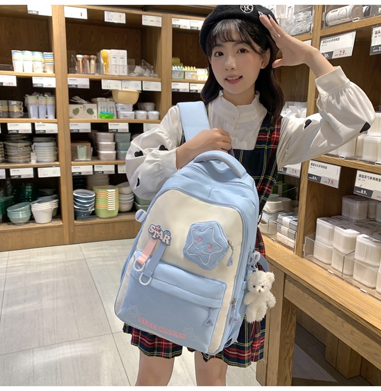 국경 새 패션 대비 컬러 스쿨백 대용량 중학생 경량 배낭 고등학교 대학생 배낭스토어 가기
