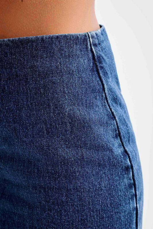국경을 넘나드는 유럽과 미국의 새로운 스타일의 여성용 반팔 데님 버튼 라펠 탑과 하이웨이스트 스커트 세트로 패셔너블한 기질을 연출합니다.