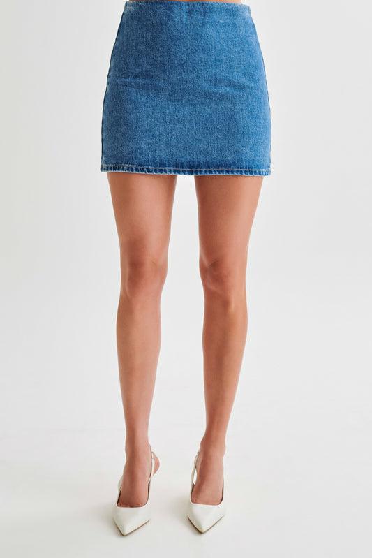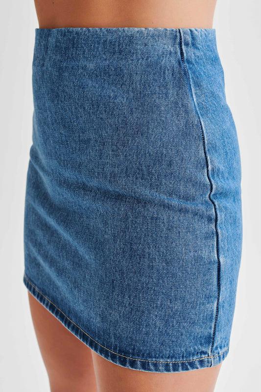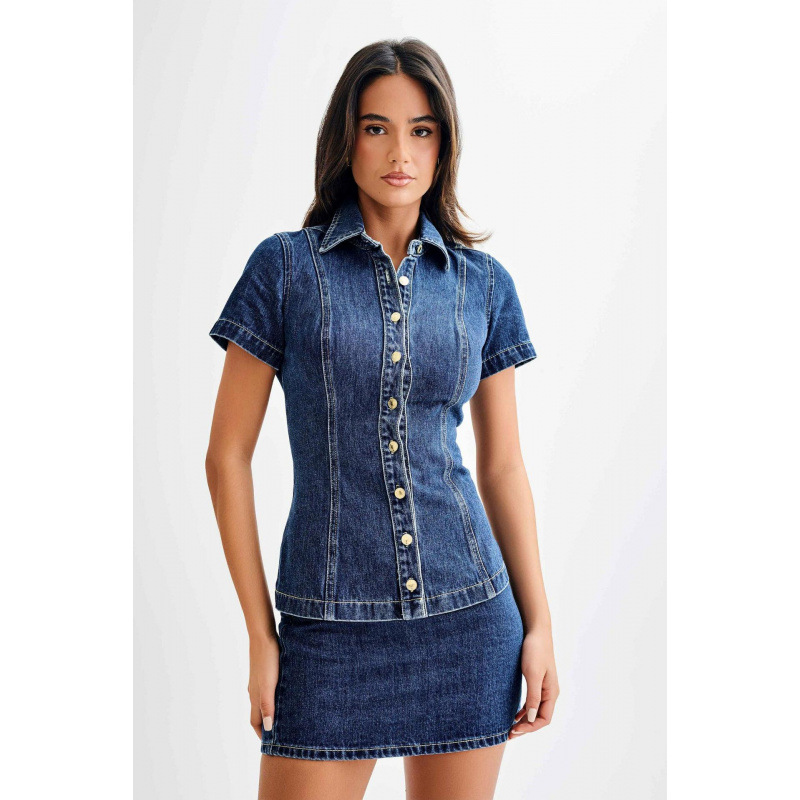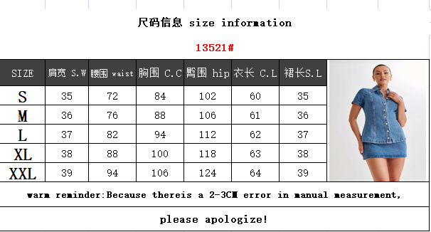 국경을 넘나드는 유럽과 미국의 새로운 스타일의 여성용 반팔 데님 버튼 라펠 탑과 하이웨이스트 스커트 세트로 패셔너블한 기질을 연출합니다.스토어 가기