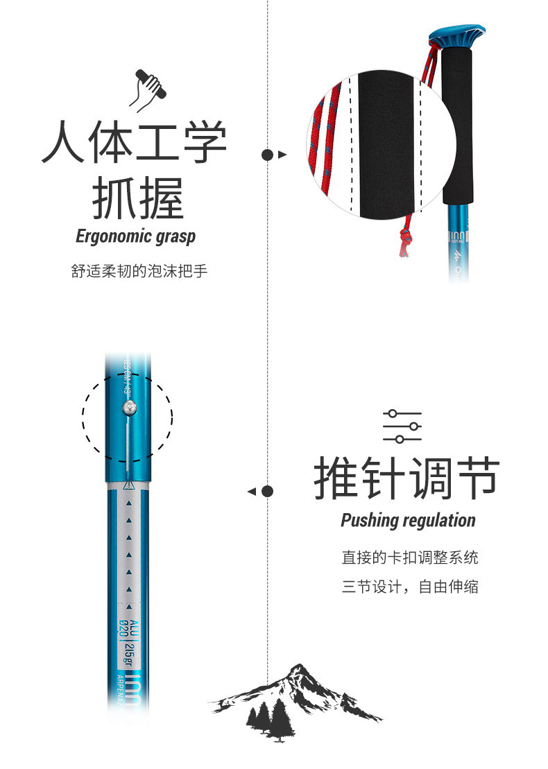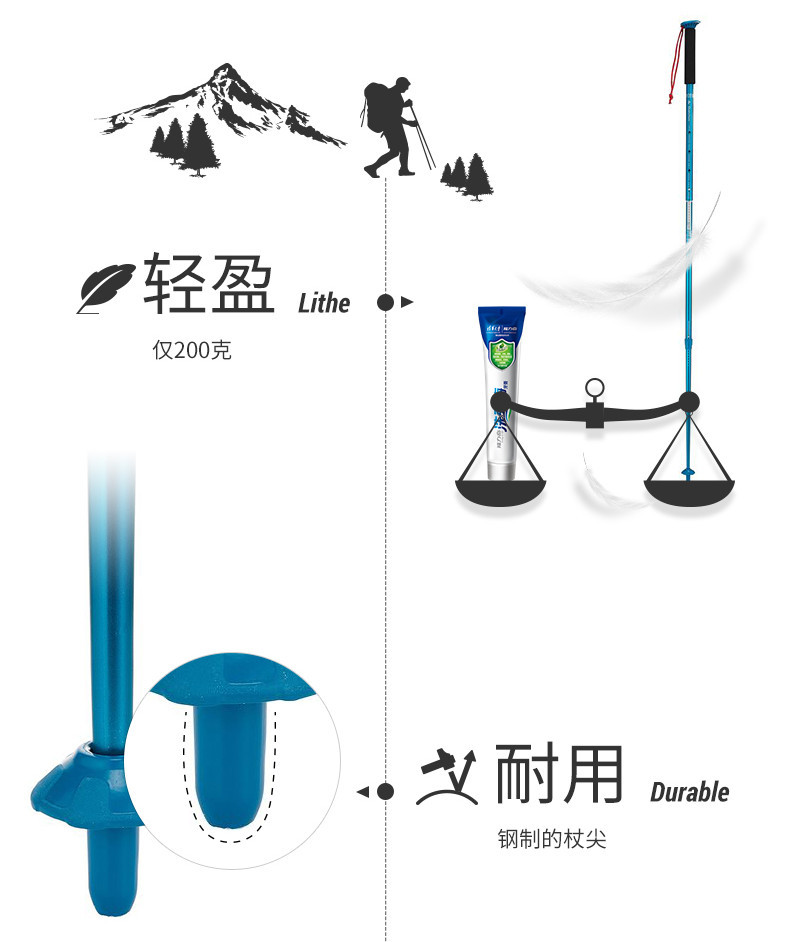 Decathlon 야외 등산 개폐식 하이킹 다기능 등산 스틱 등산 경량 여성용 지팡이 ODAP스토어 가기