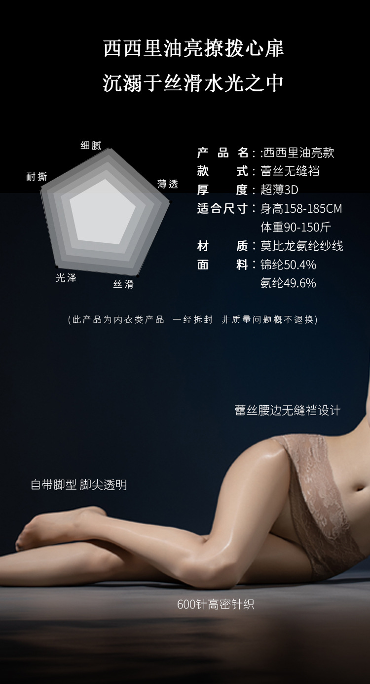 [시칠리아 심리스 스타킹] 오로라 오일 샤이니 심리스 딥 크로치 초박형 3D 실키 레이스 하이웨이스트 스타킹 섹시스토어 가기