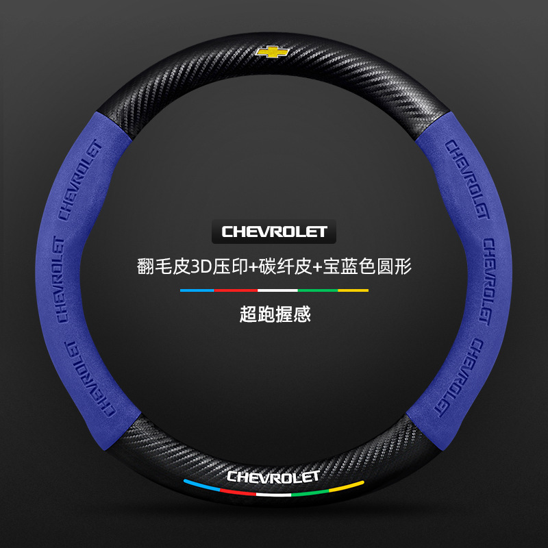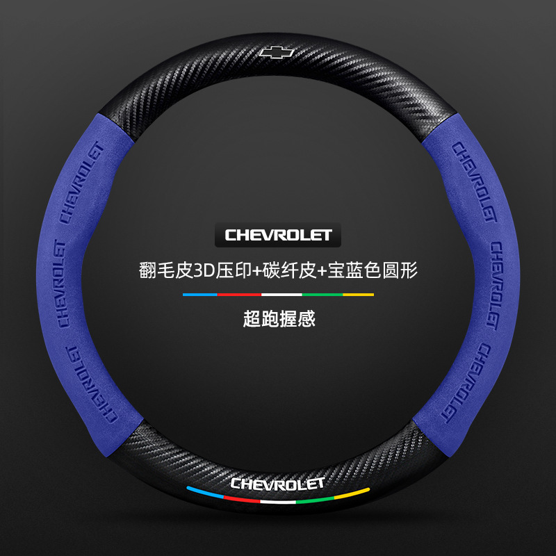 • 翻毛皮3D压印 碳纤皮 宝蓝色圆形 雪佛兰黑标
