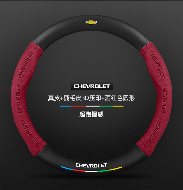 • 真皮 翻毛皮3D压印 酒红色圆形 雪佛兰黑标