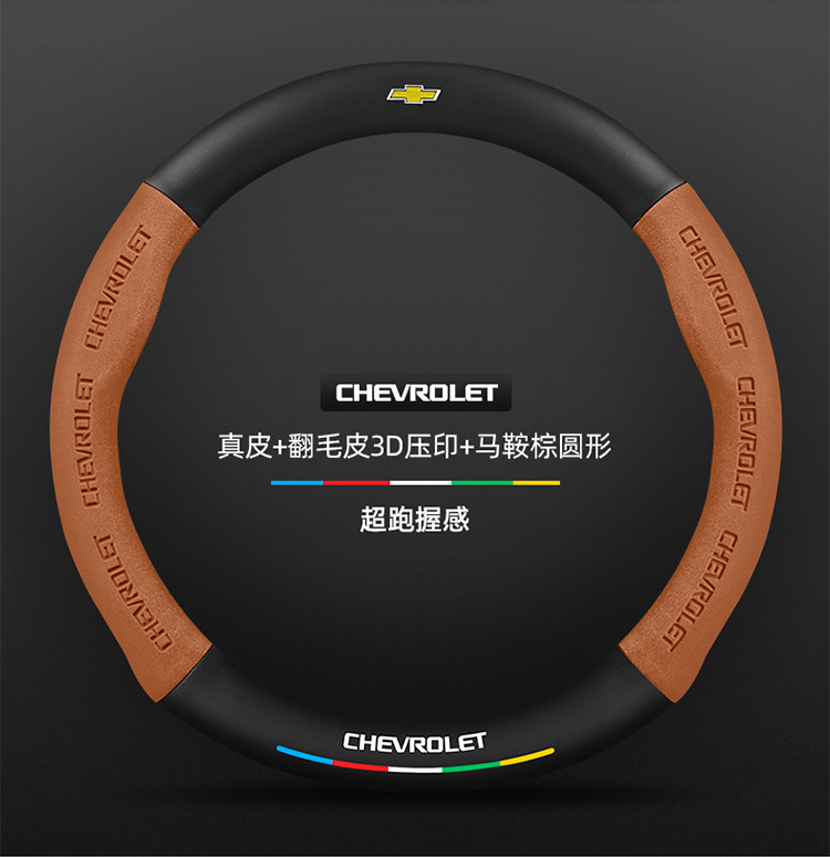 • 翻毛皮3D压印 碳纤皮 马鞍棕圆形 雪佛兰黑标