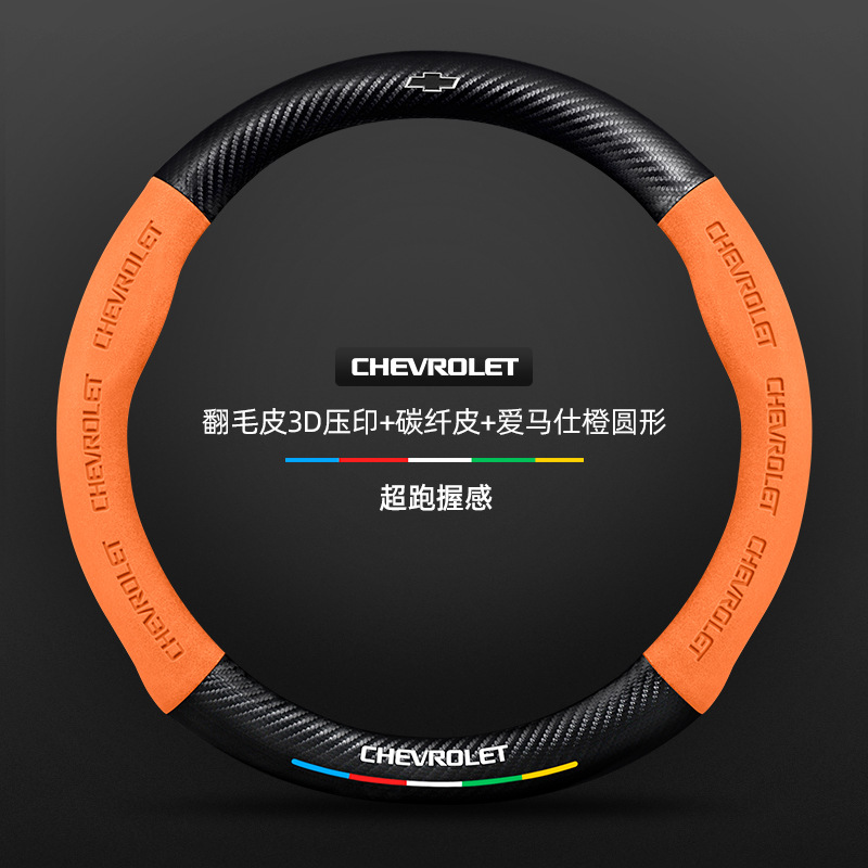 • 翻毛皮3D压印 碳纤皮 爱马士橙圆形 雪佛兰黑标