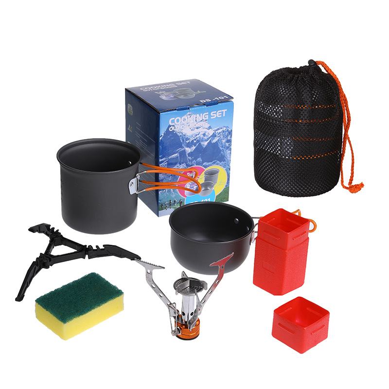 Amazon 베스트셀러 야외 냄비 세트 1-2인용 휴대용 캠핑 조리기구(스토브 헤드 및 스탠드 포함)