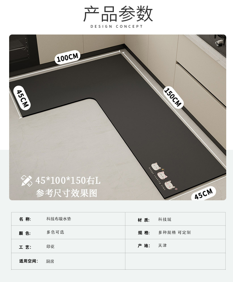 L자형 주방 바닥매트는 얼룩 방지 및 관리가 용이한 규조토 진흙 바닥매트, 흡수성 및 기름흡수성 발매트, 미끄럼 방지 매트입니다.