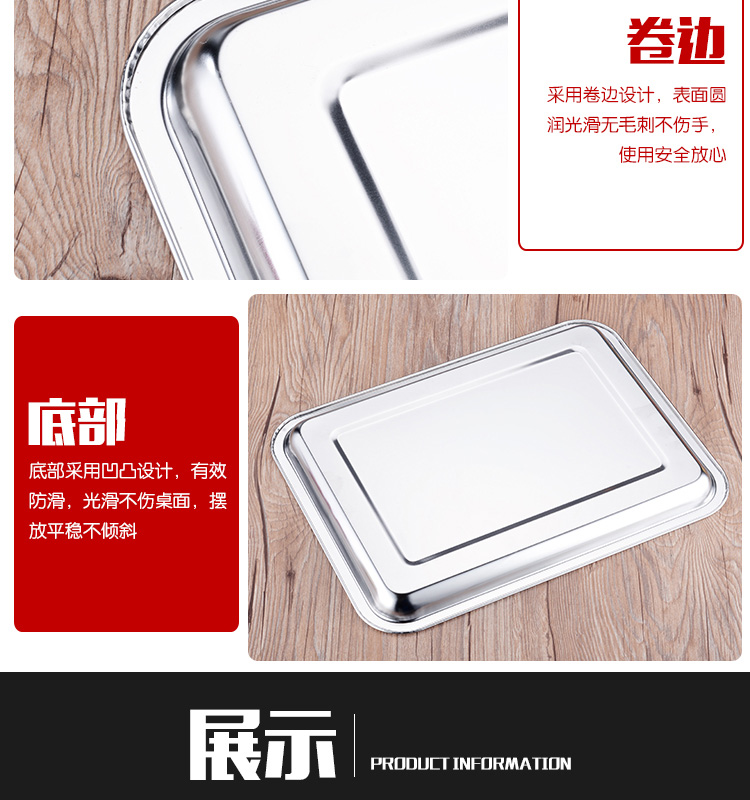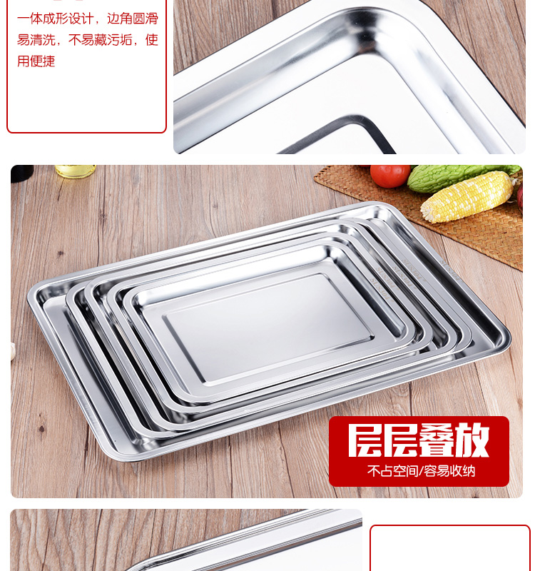 ll304 스테인레스 스틸 접시 직사각형 상업용 트레이 바베큐 접시 홈 다이닝 접시 찜 밥 접시 깊은 사각형 접시 구이스토어 가기