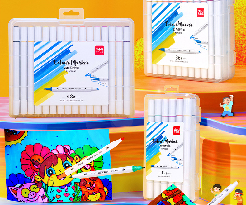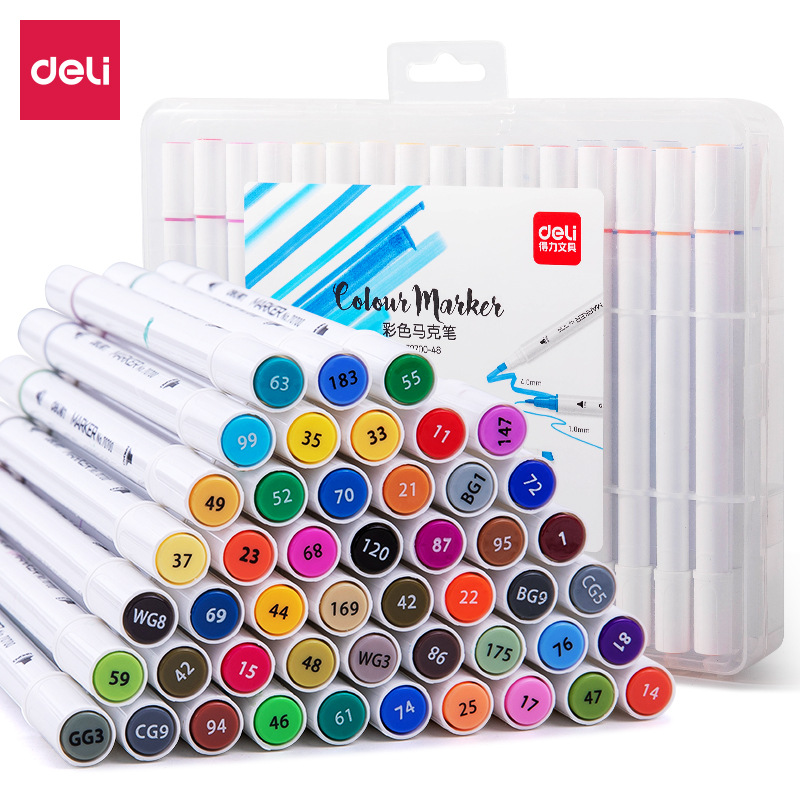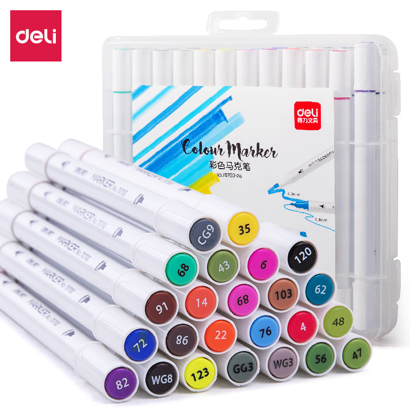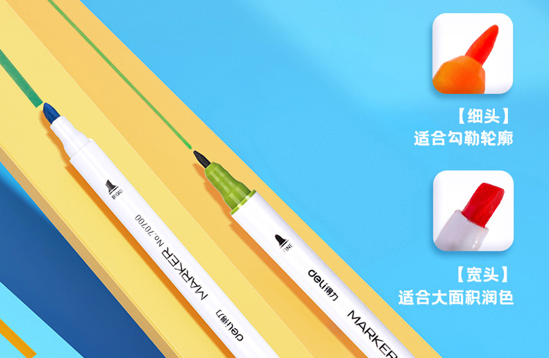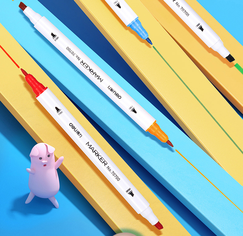 델리 70700 양두 얇은 막대 빠른 건조 마커 펜 학생 수채화 양머리 그림 펜 손으로 그린 디자인 마커 펜스토어 가기
