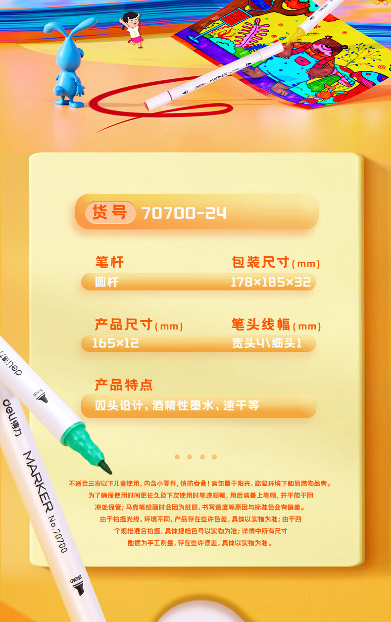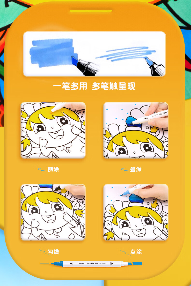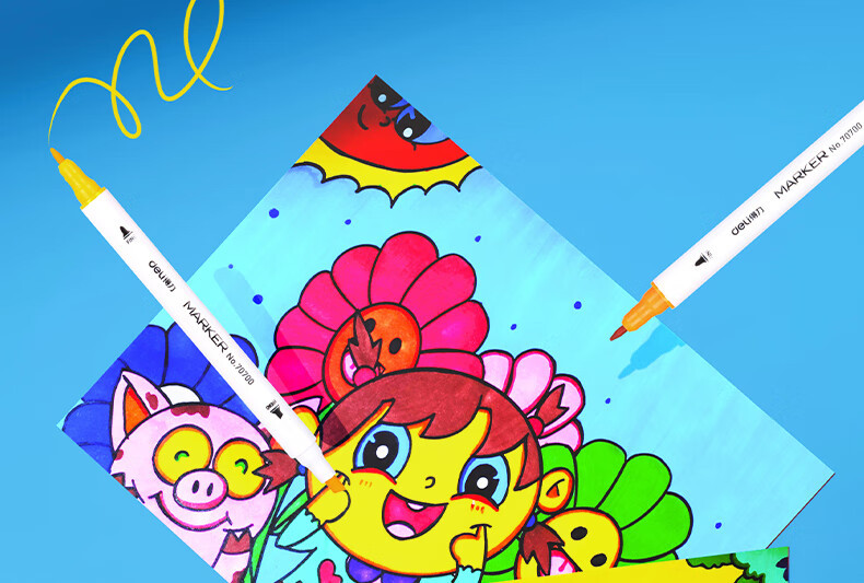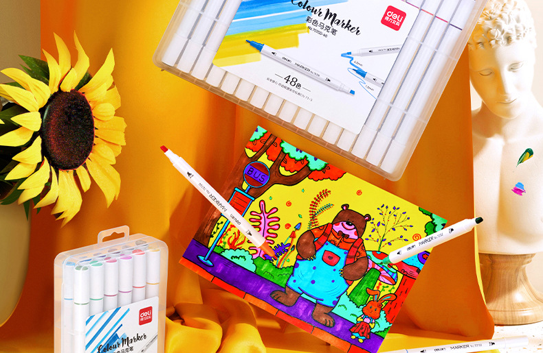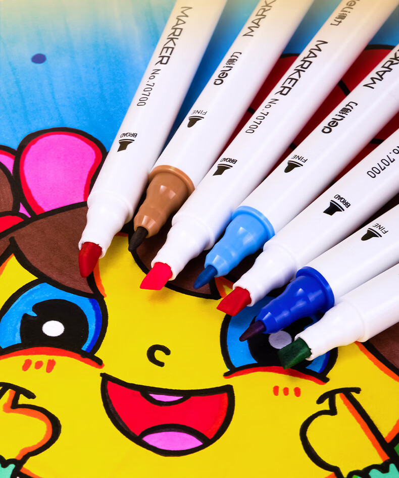 델리 70700 양두 얇은 막대 빠른 건조 마커 펜 학생 수채화 양머리 그림 펜 손으로 그린 디자인 마커 펜스토어 가기