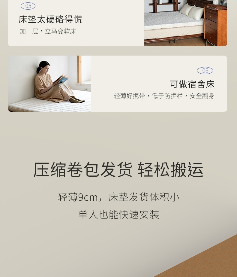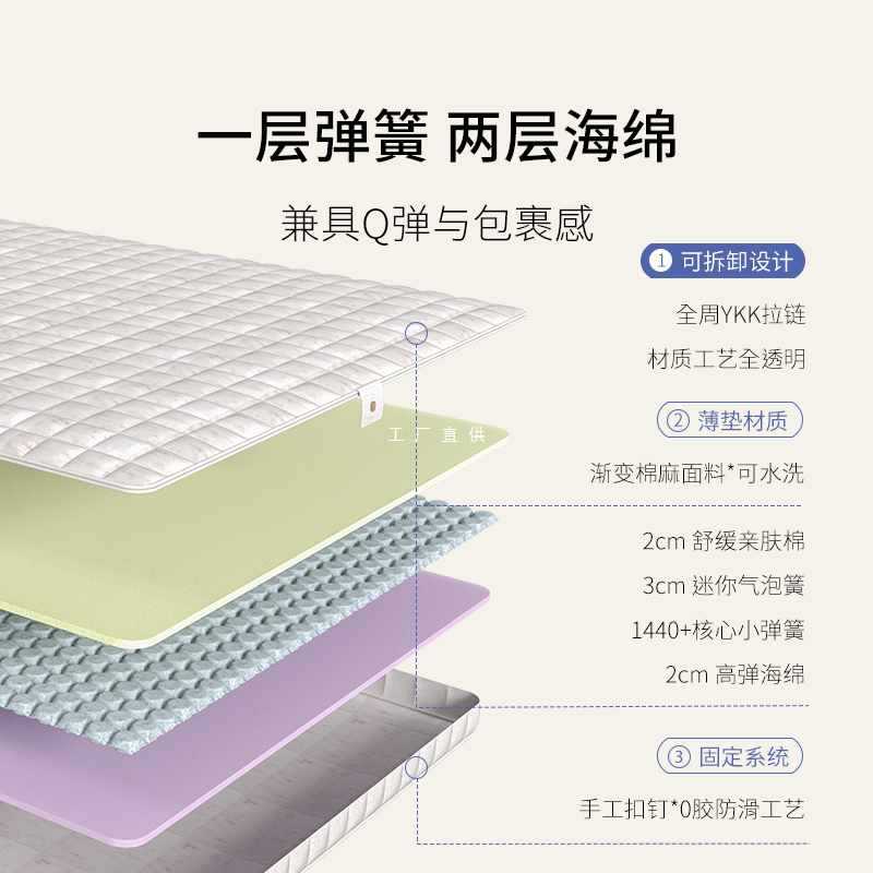 [소형 스프링 패드] 매트리스 스프링 얇은 패드 학생 기숙사 싱글 척추 보호 피부 친화적인 스폰지 패드 다다미
