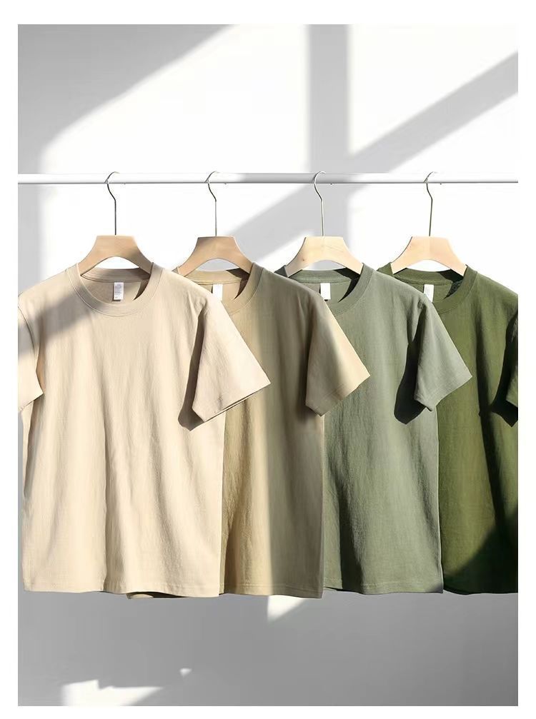 퓨어 코튼 헤비 루즈베이스 셔츠 캐주얼 베이직 반팔 티셔츠 퓨어 코튼 레트로 솔리드 컬러 라운드 넥 일본 남성 사랑