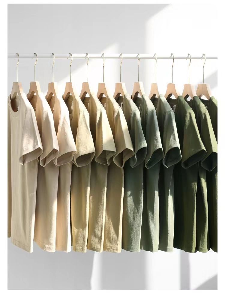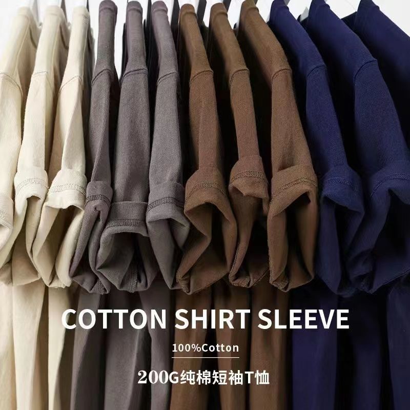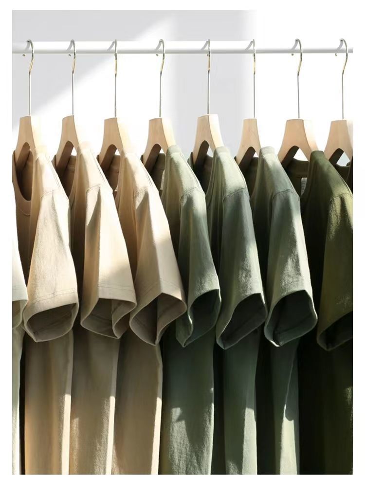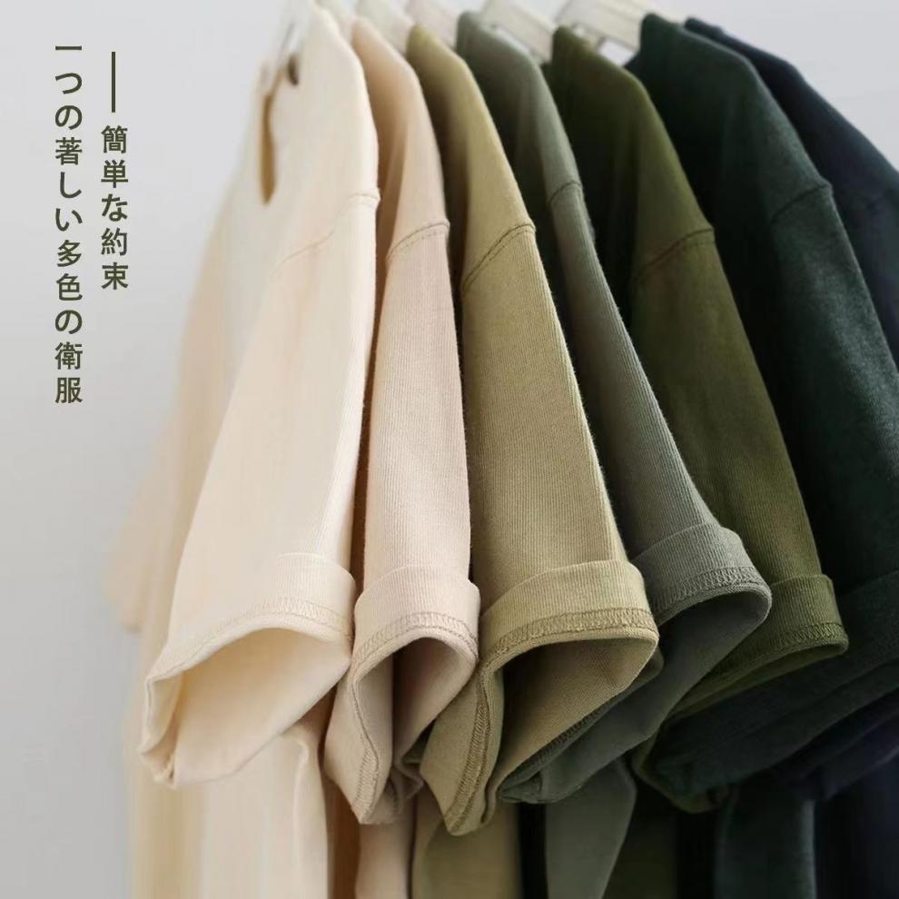 퓨어 코튼 헤비 루즈베이스 셔츠 캐주얼 베이직 반팔 티셔츠 퓨어 코튼 레트로 솔리드 컬러 라운드 넥 일본 남성 사랑스토어 가기