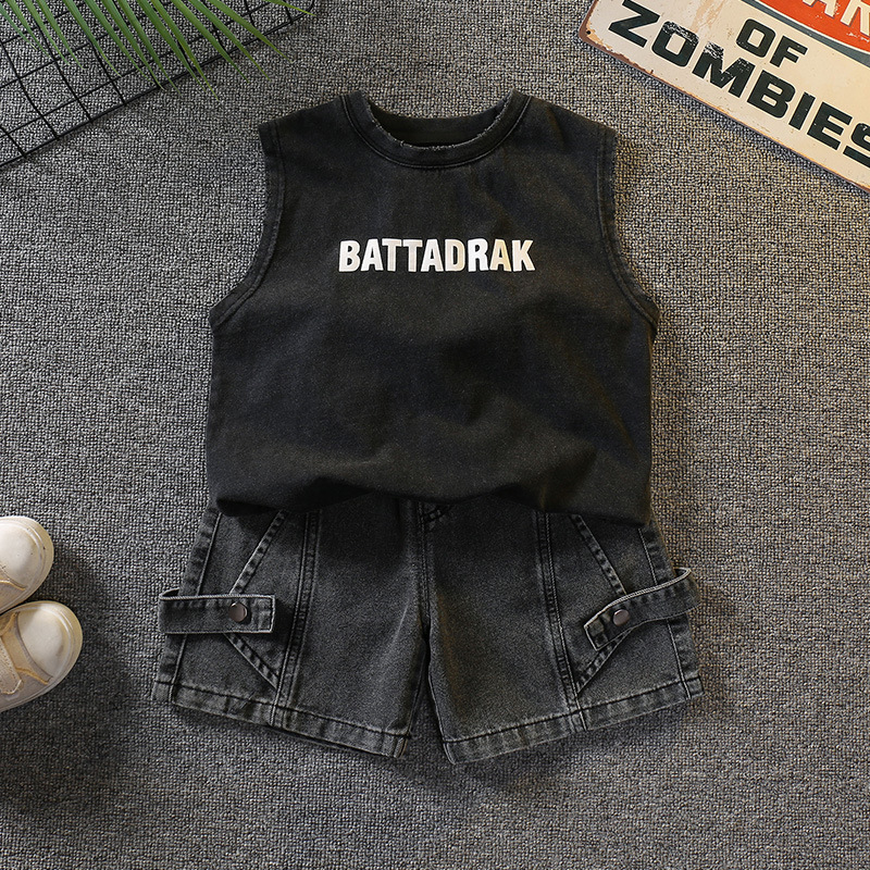 7339 남아 여름옷 세트 2026 새로운 스타일의 세련된 아동 조끼 투피스 세트 멋스러운 여름 민소매 옷