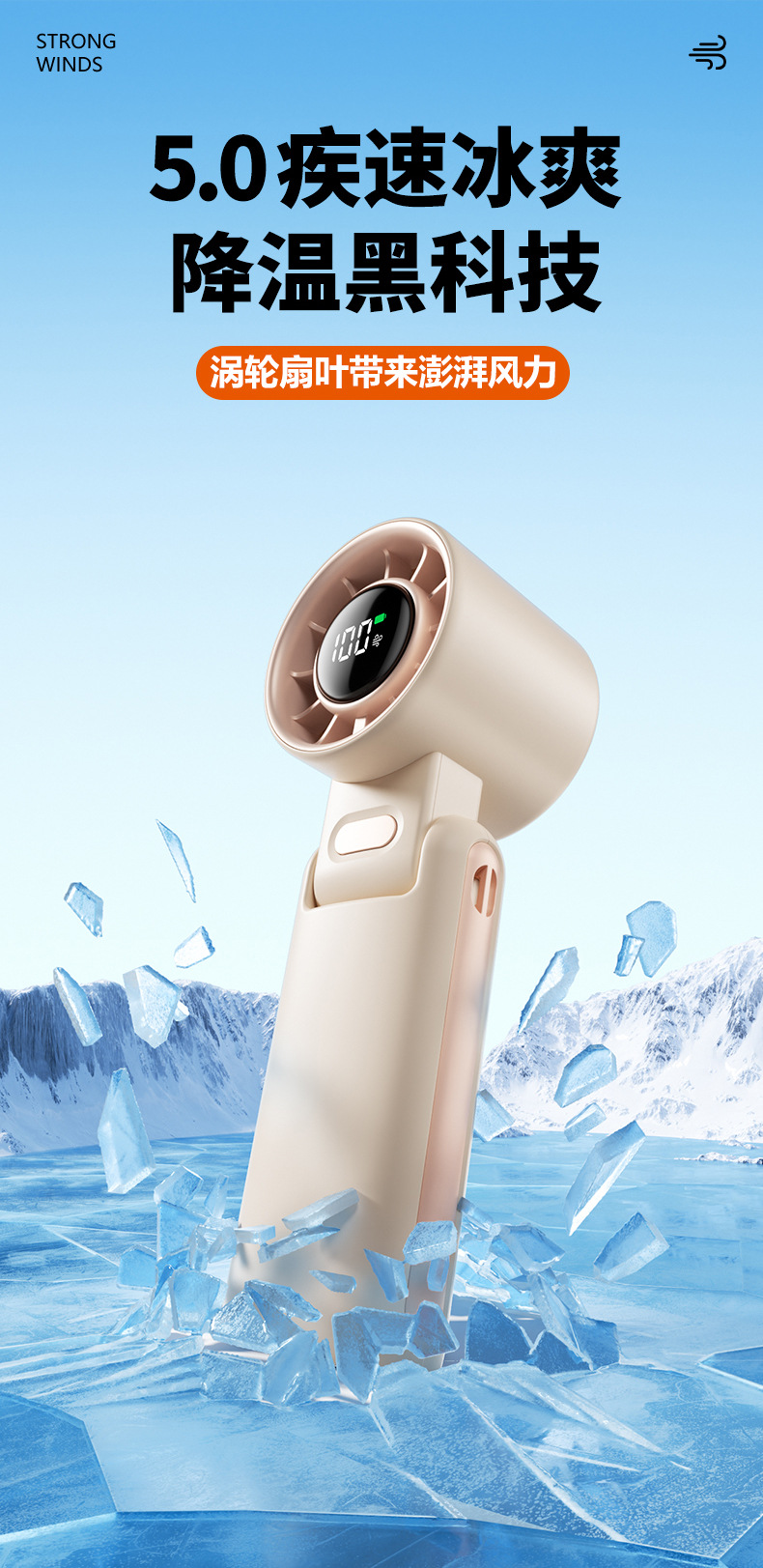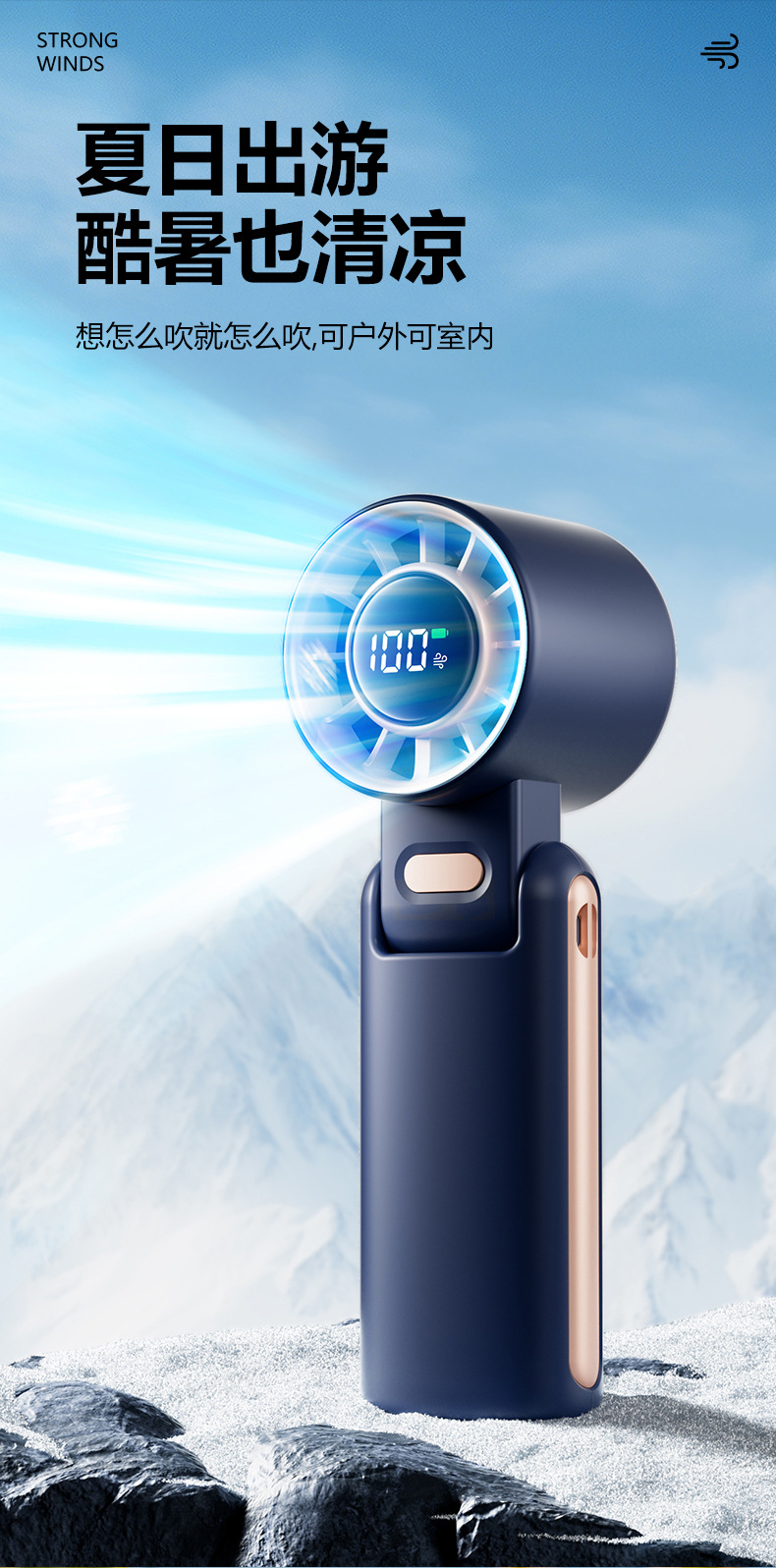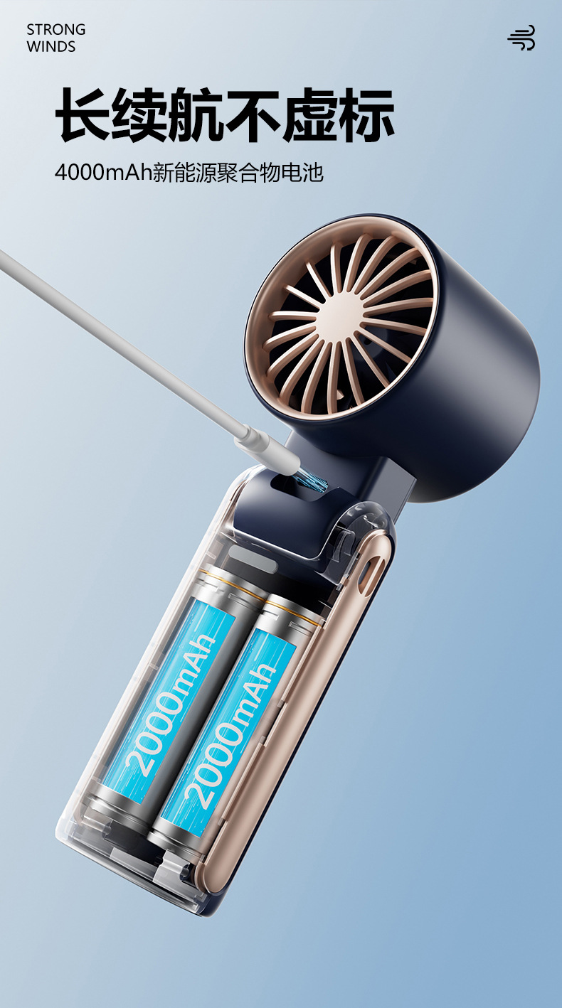 휴대용 선풍기, 야외용 접이식 미니 USB 소형 전기 선풍기, 긴 배터리 수명, 브러시리스 모터, 강풍량스토어 가기