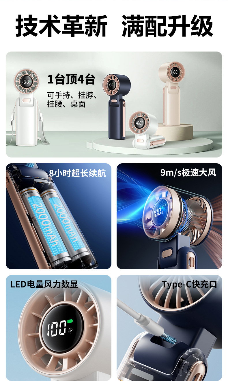 휴대용 선풍기, 야외용 접이식 미니 USB 소형 전기 선풍기, 긴 배터리 수명, 브러시리스 모터, 강풍량