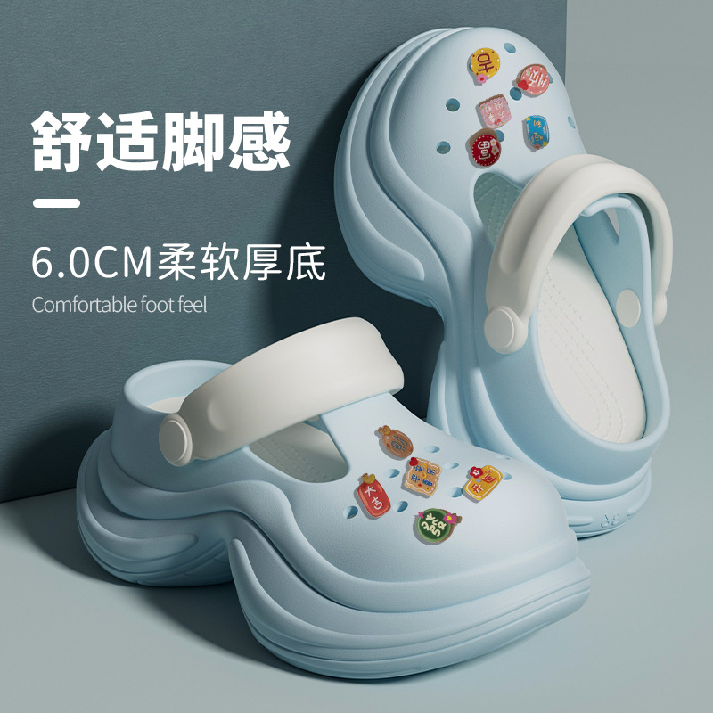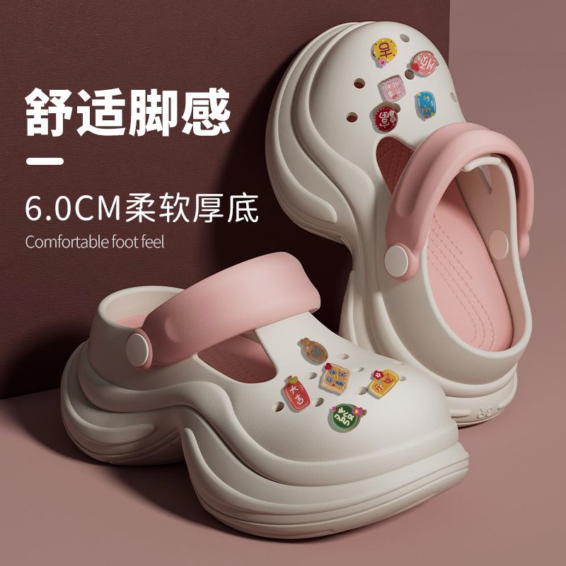 6.0eva 홀 신발 여성 여름 새로운 두꺼운 단독 상승 인터넷 축하 핫 스타일 Baotou 비치 신발 샌들과 슬리퍼