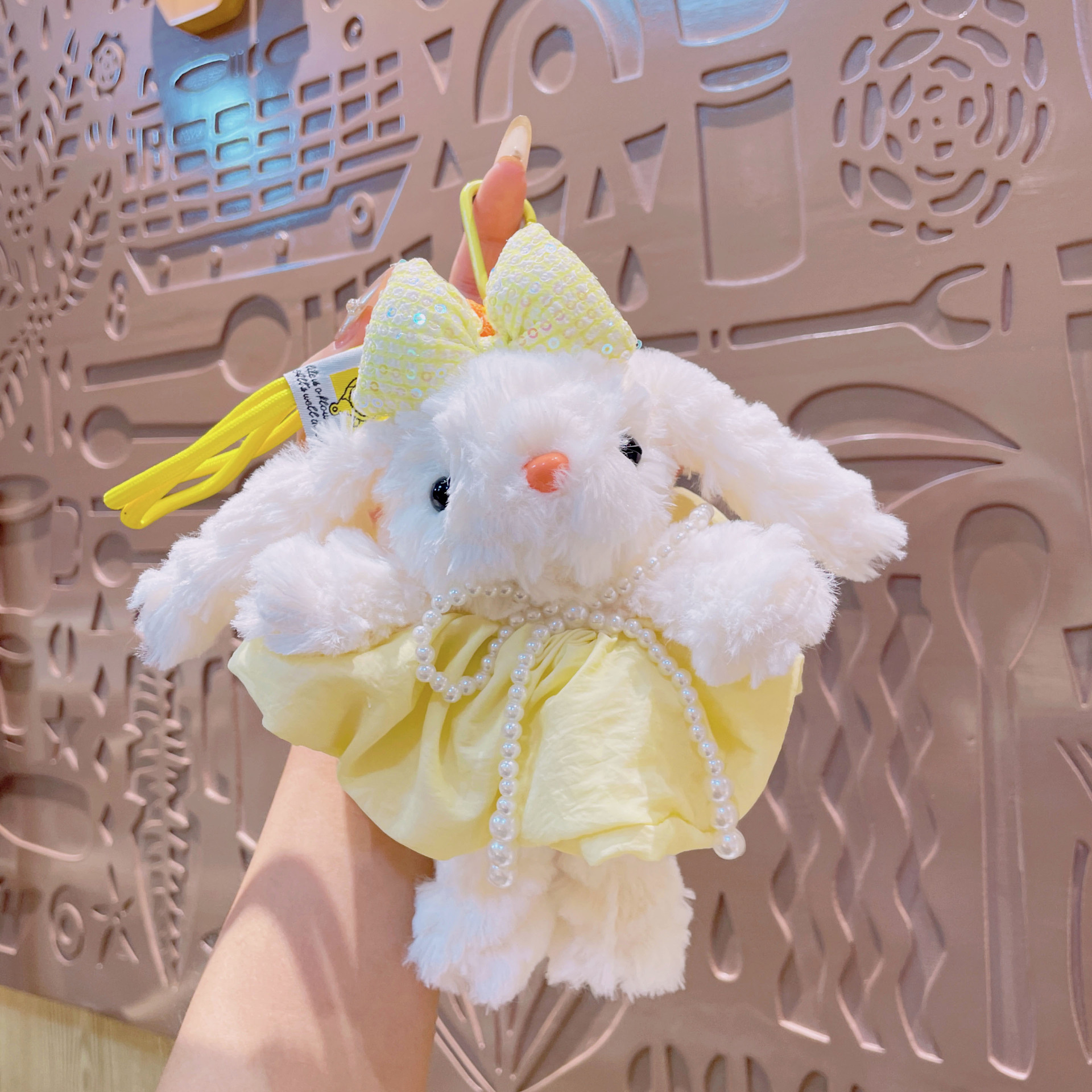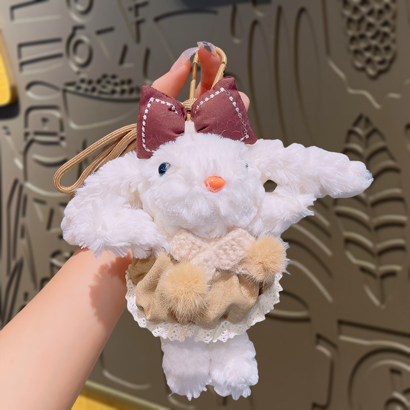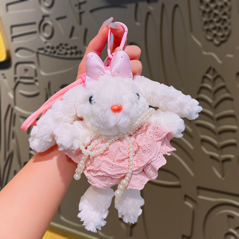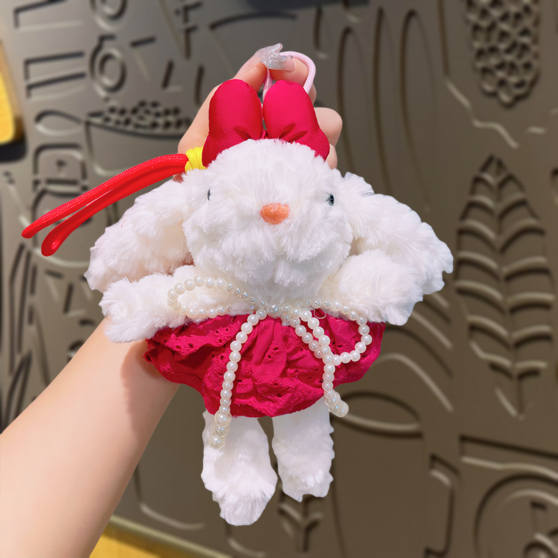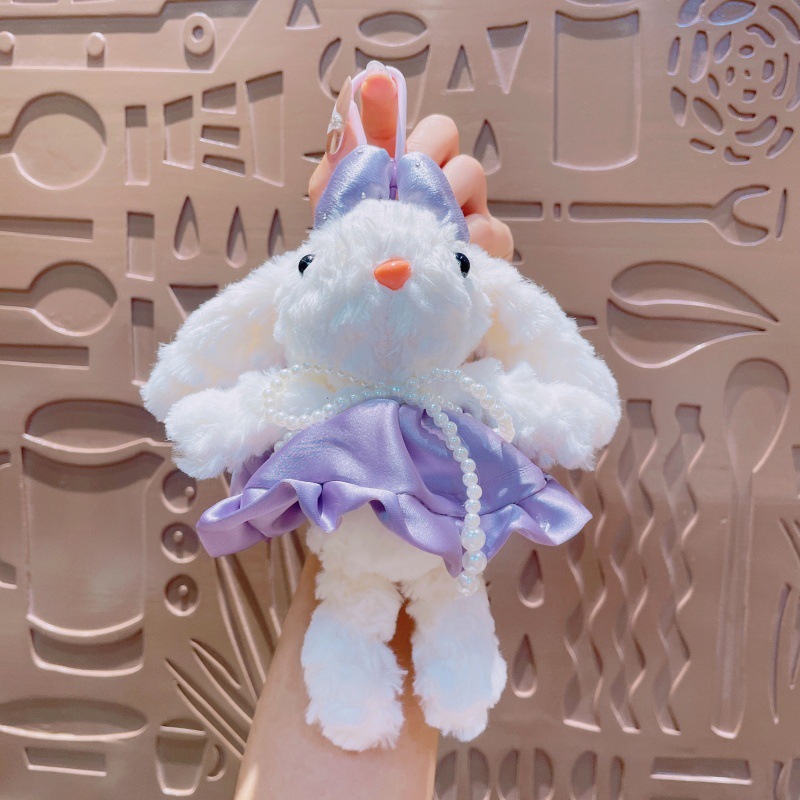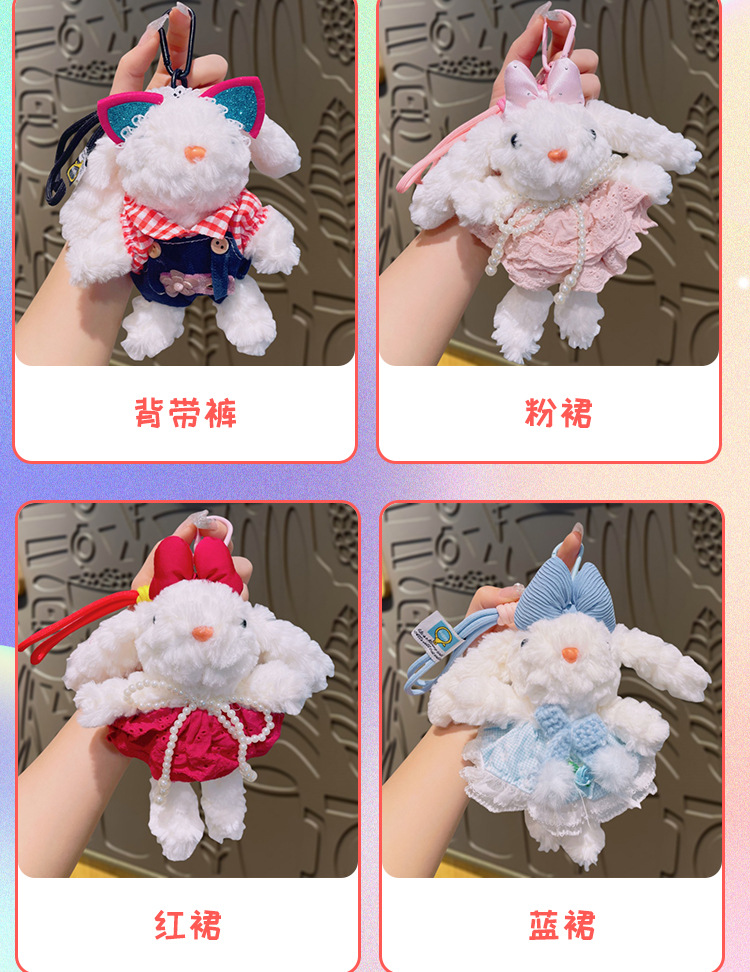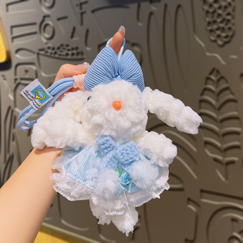 창조적 인 만화 봉제 공주 원피스 긴 귀 토끼 키 체인 귀여운 원피스 토끼 소녀 가방 펜던트 작은 선물