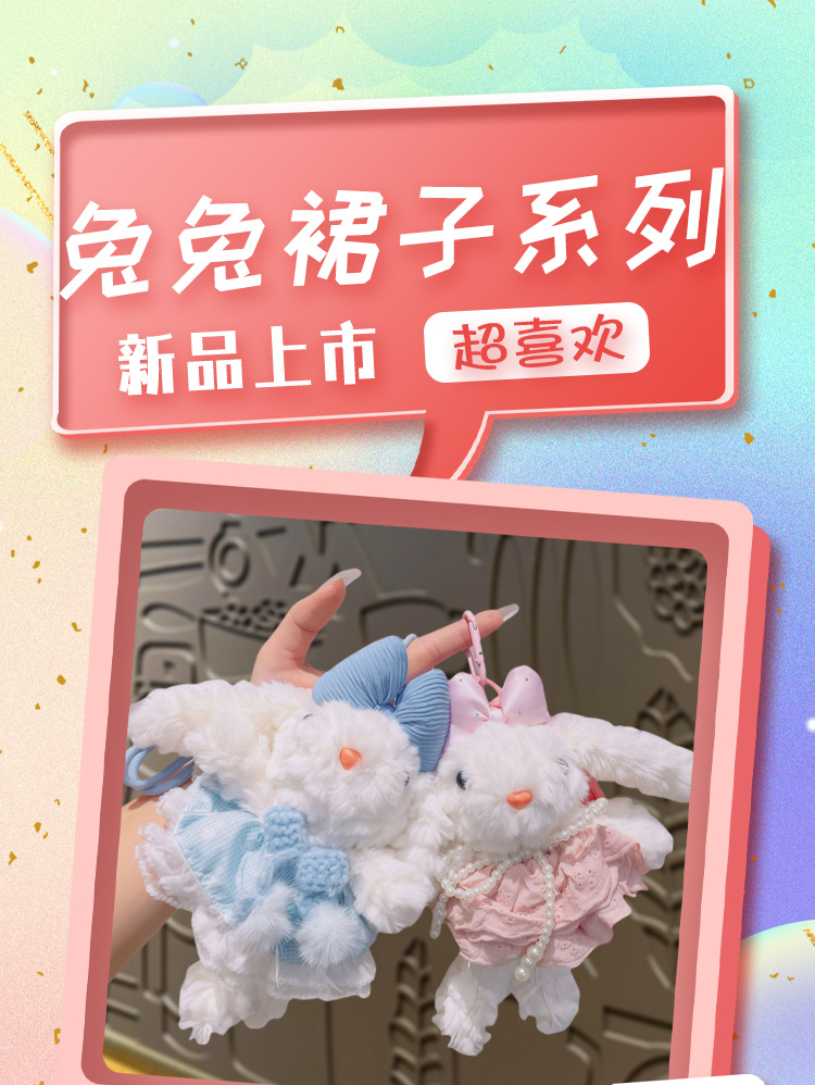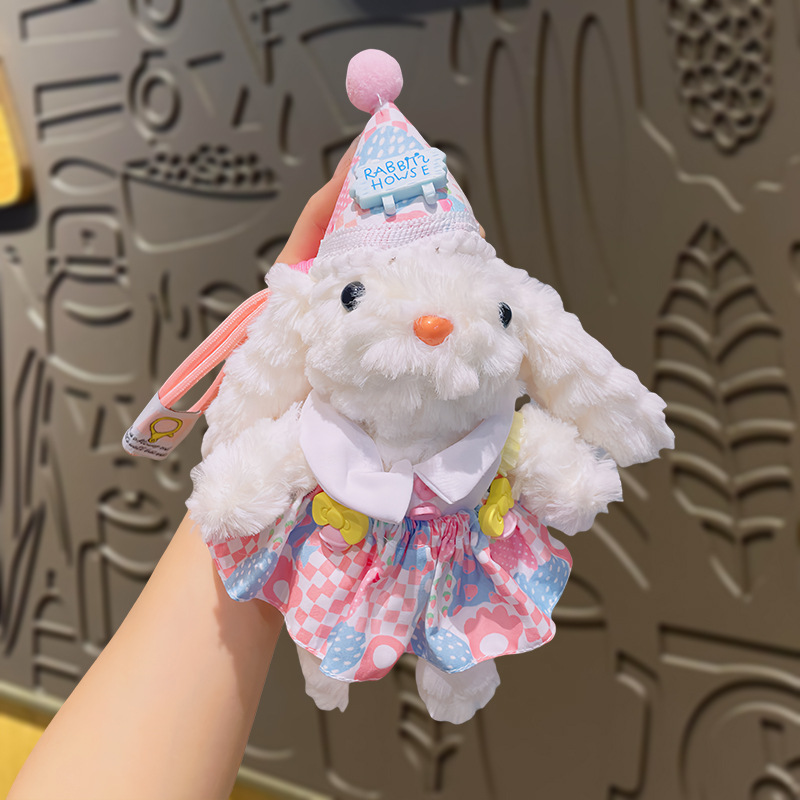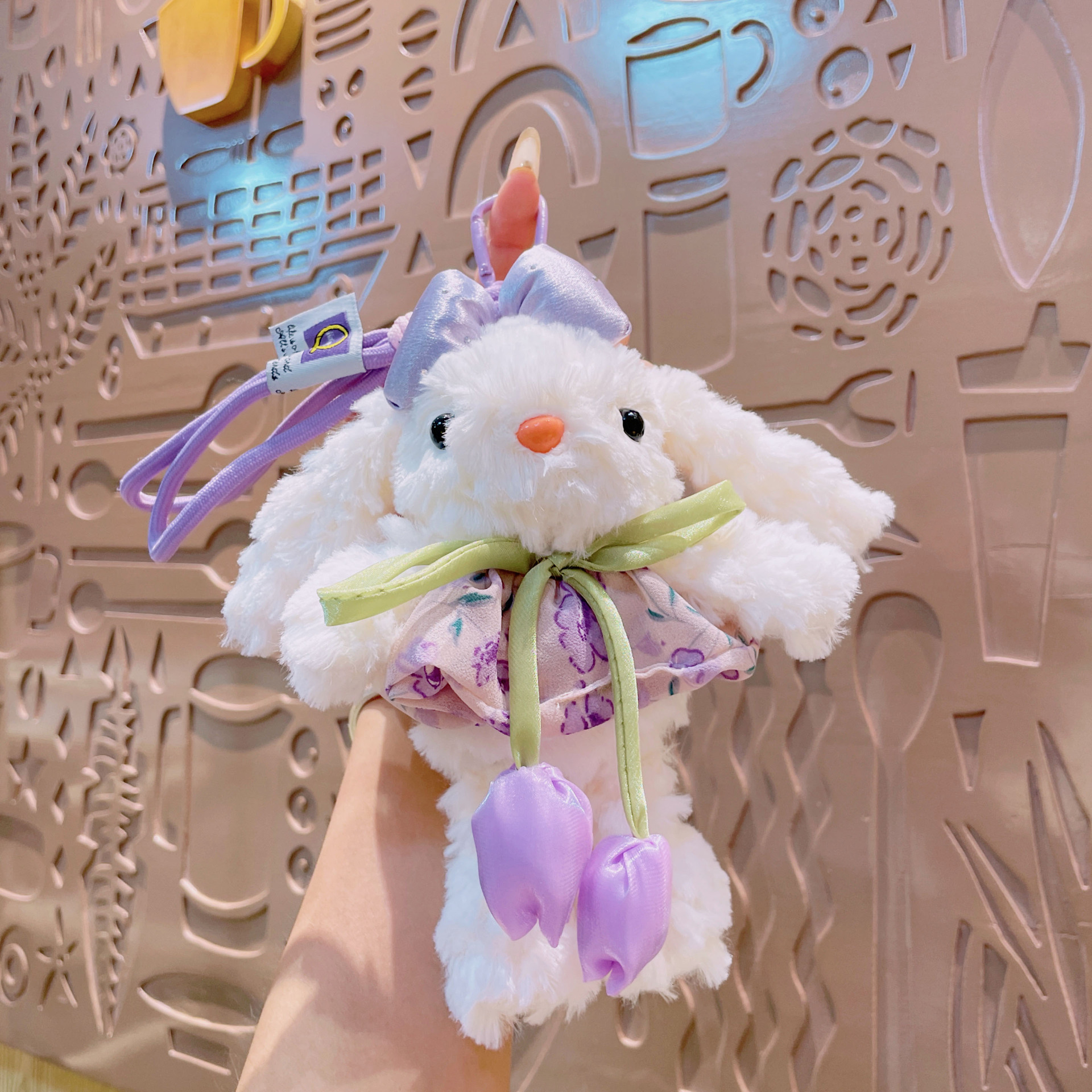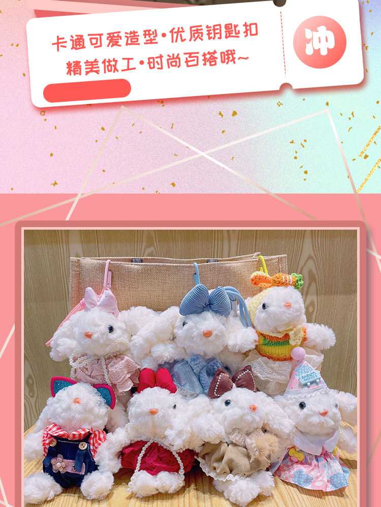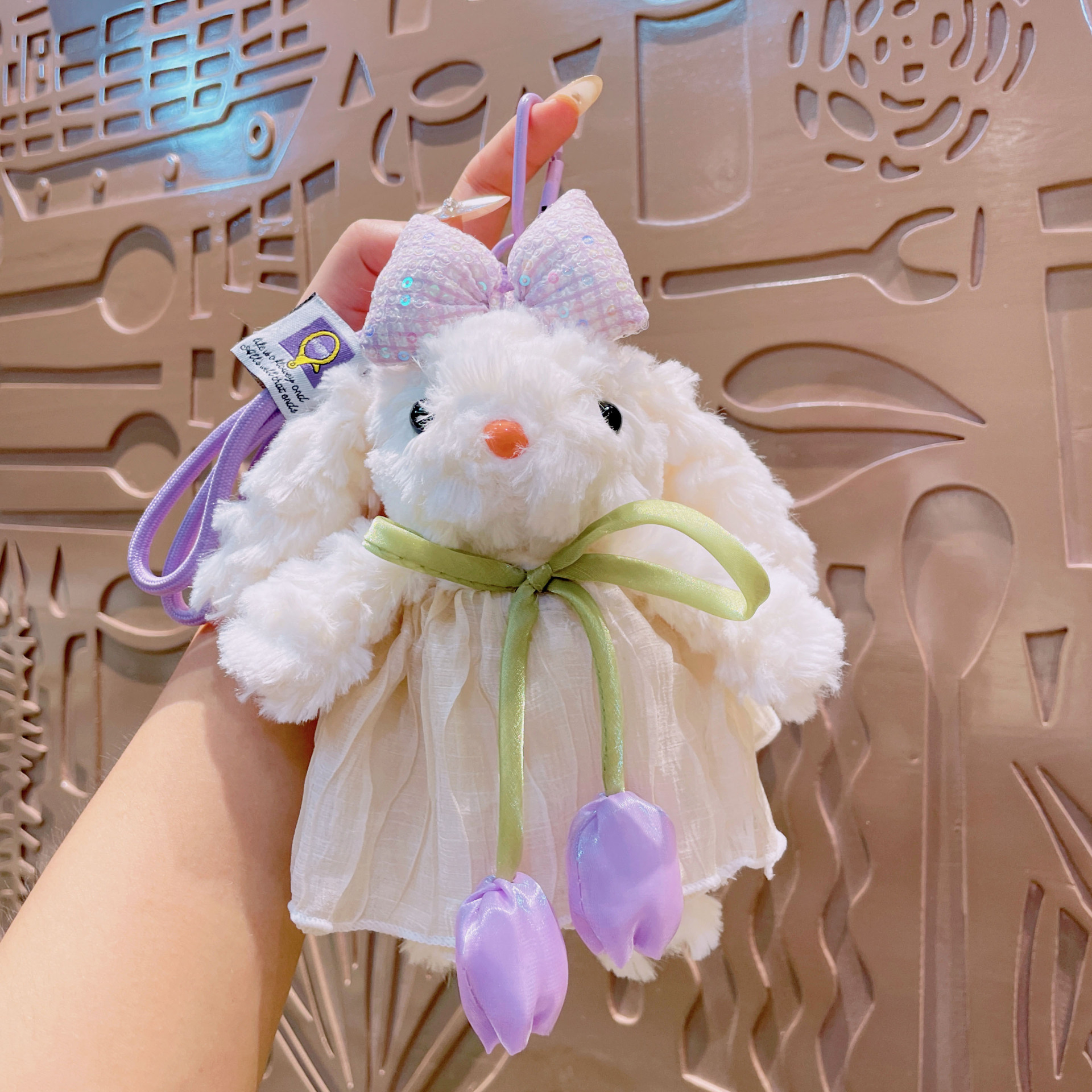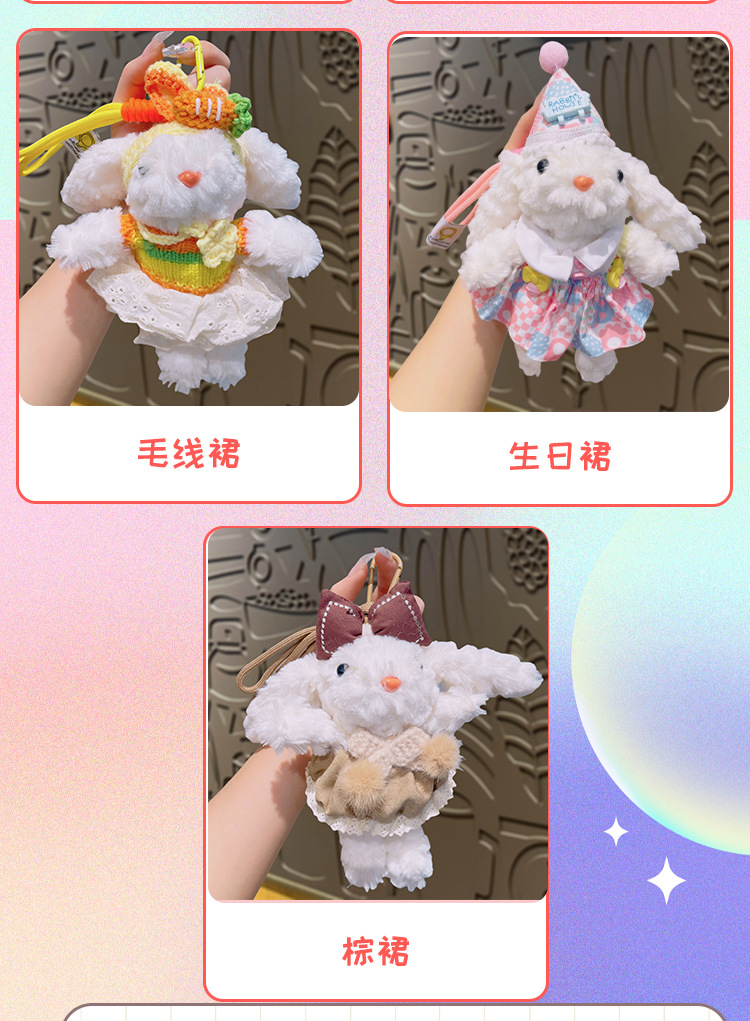 창조적 인 만화 봉제 공주 원피스 긴 귀 토끼 키 체인 귀여운 원피스 토끼 소녀 가방 펜던트 작은 선물