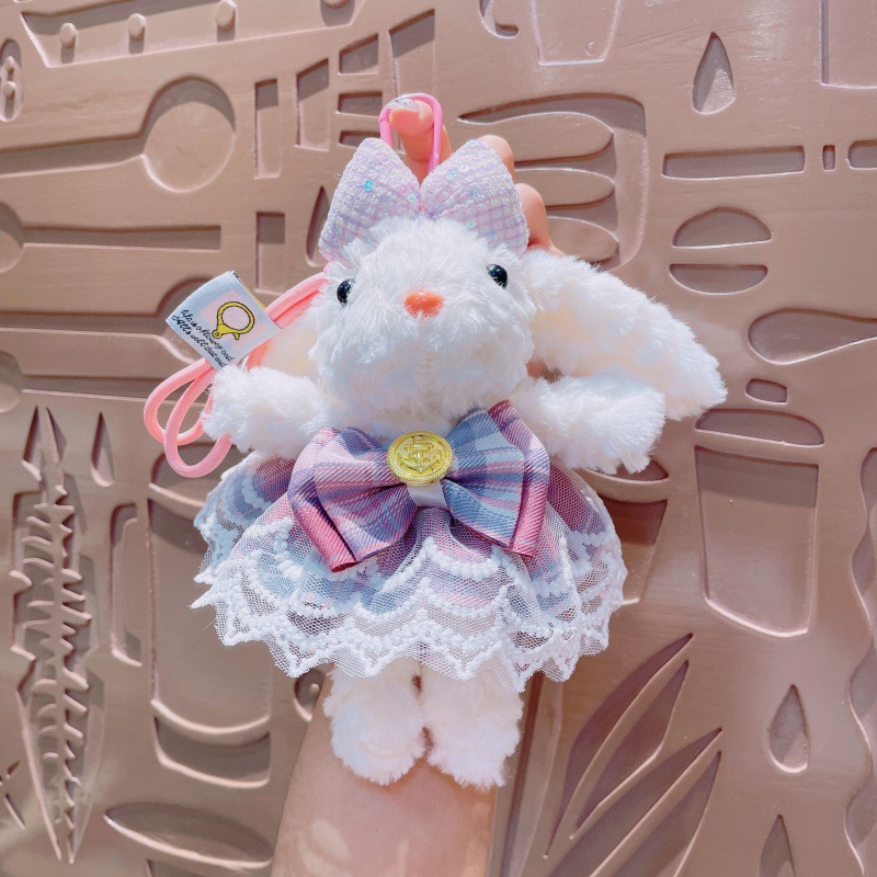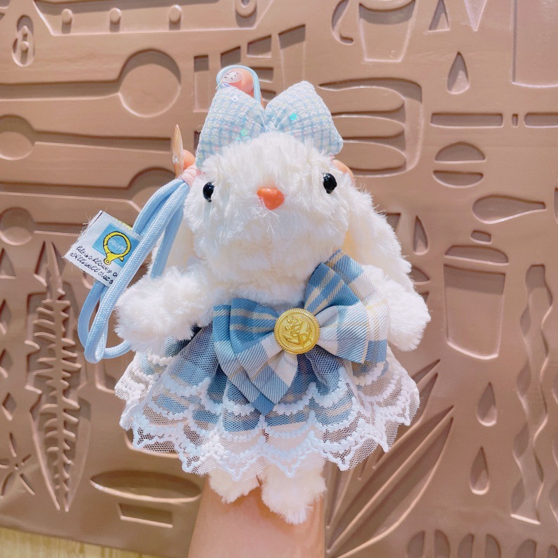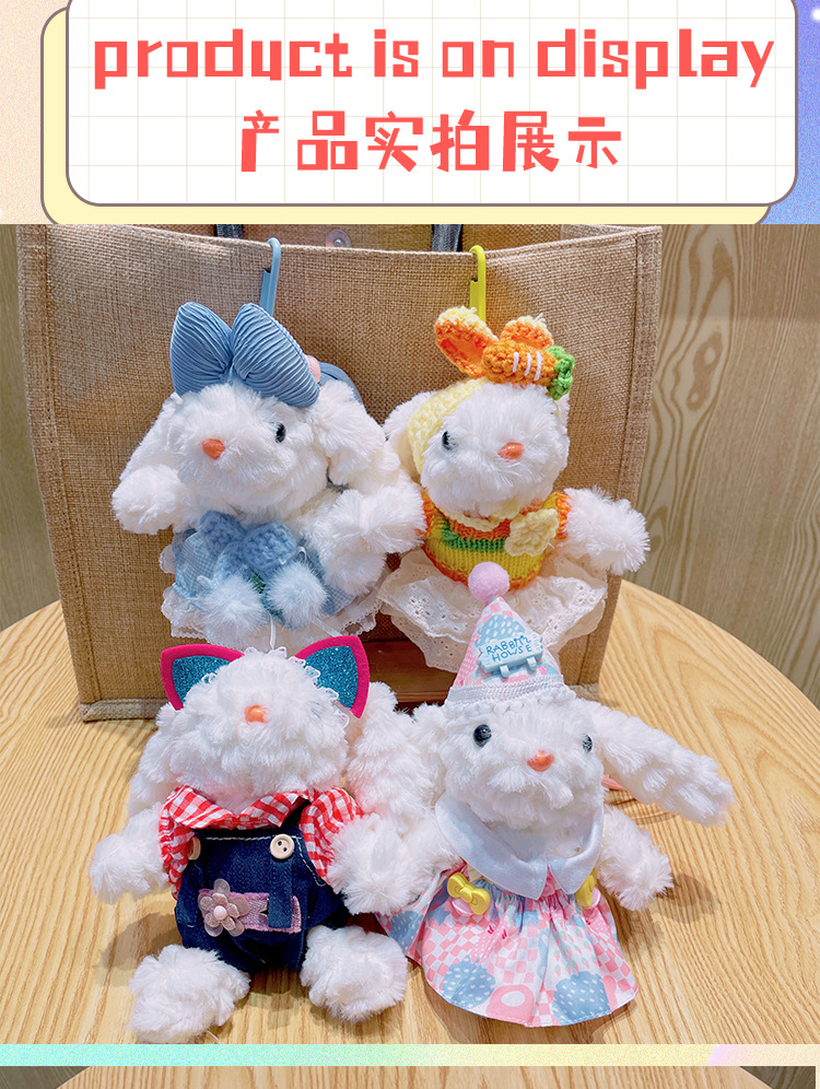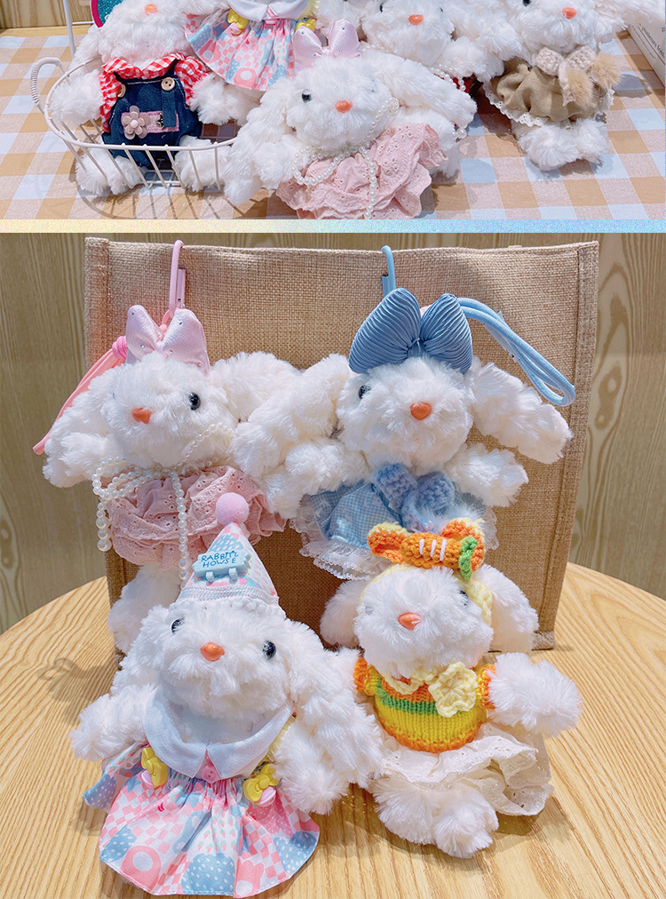창조적 인 만화 봉제 공주 원피스 긴 귀 토끼 키 체인 귀여운 원피스 토끼 소녀 가방 펜던트 작은 선물스토어 가기