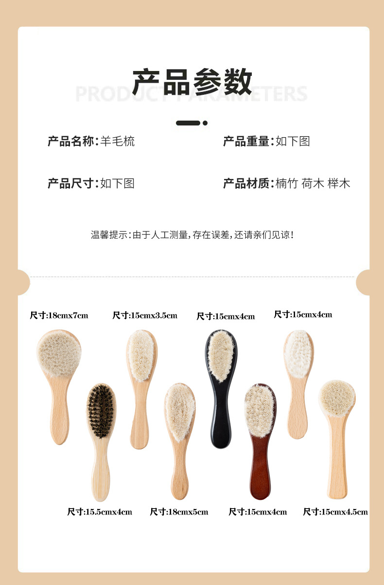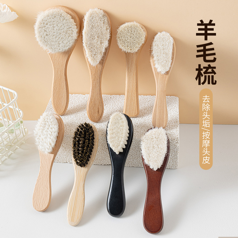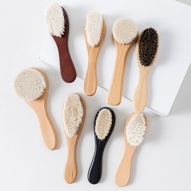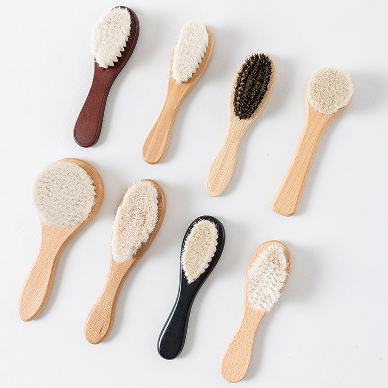 국경 간 스팟 베이비 목욕 케어 울 브러시 너도밤 나무 원색 스케일 제거 목욕 브러시 케어 베이비 울 빗