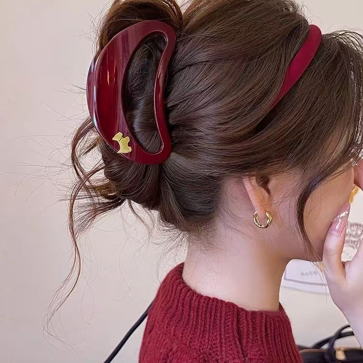 디자인 센스 이른 봄 하이 엔드 골드 라벨 그랩 여성용 2025 새로운 하이 엔드 센스 상어 클립 백 헤드 헤어 클립 헤어 액세서리