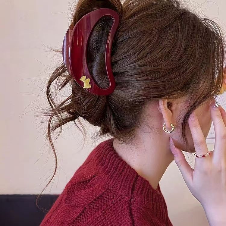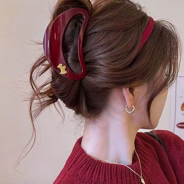 디자인 센스 이른 봄 하이 엔드 골드 라벨 그랩 여성용 2025 새로운 하이 엔드 센스 상어 클립 백 헤드 헤어 클립 헤어 액세서리스토어 가기