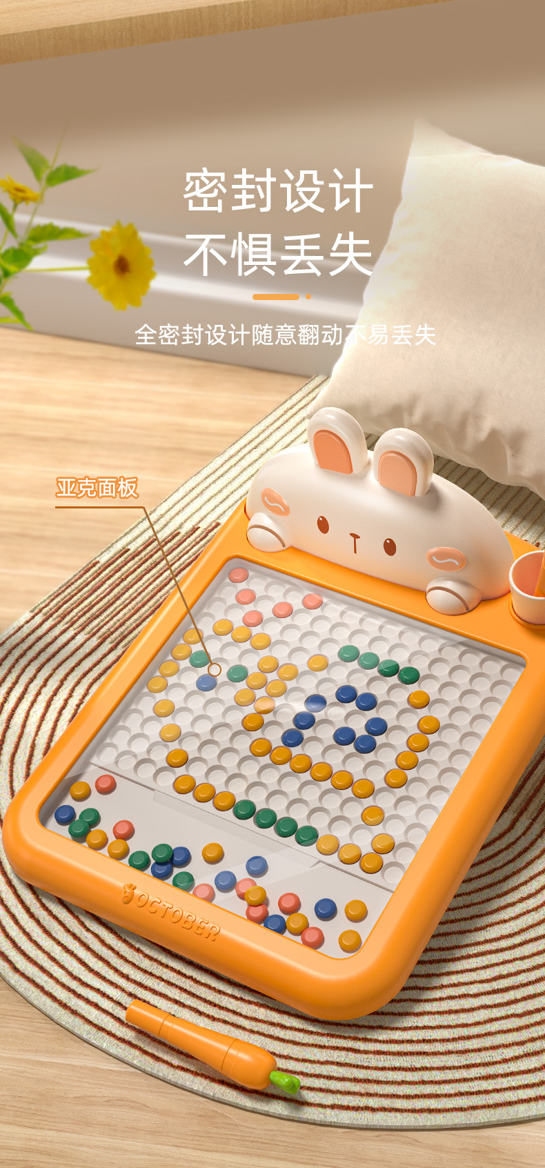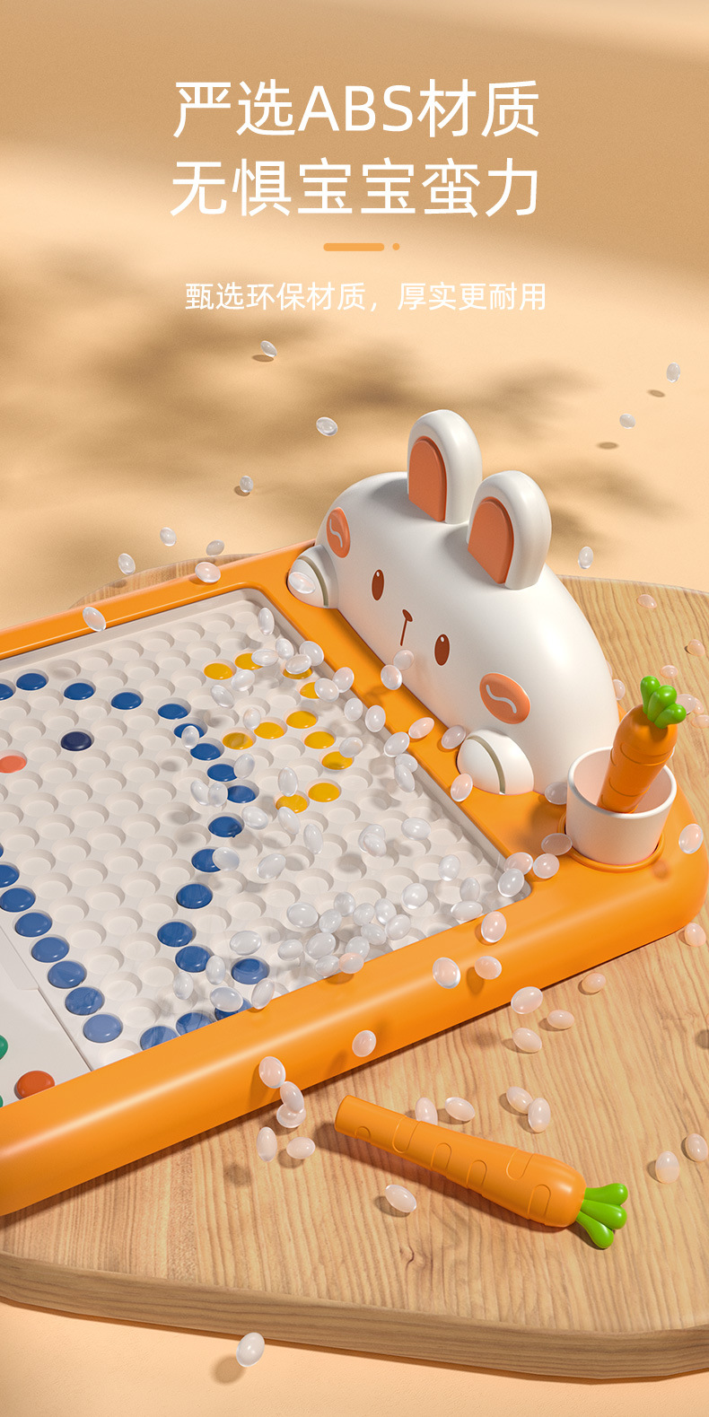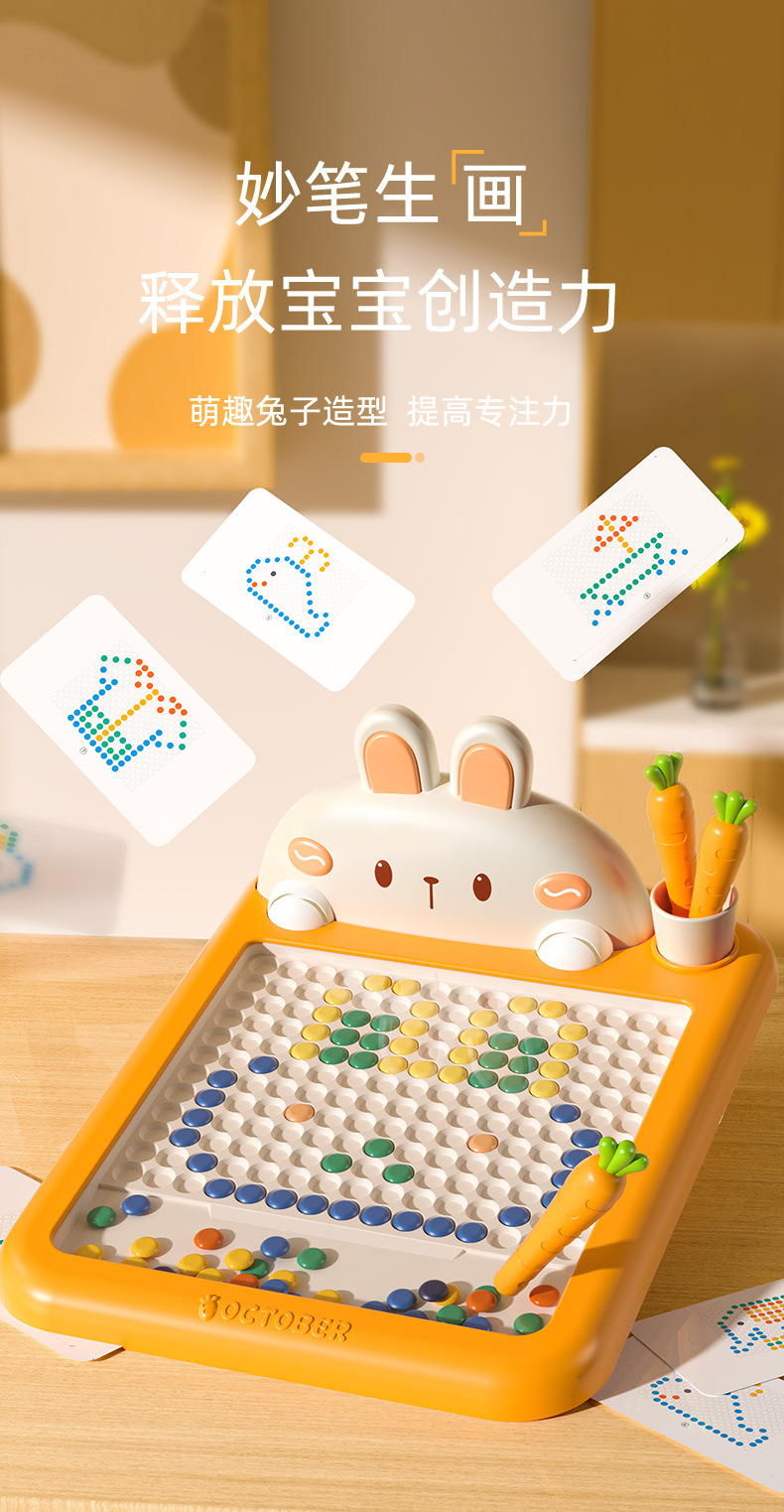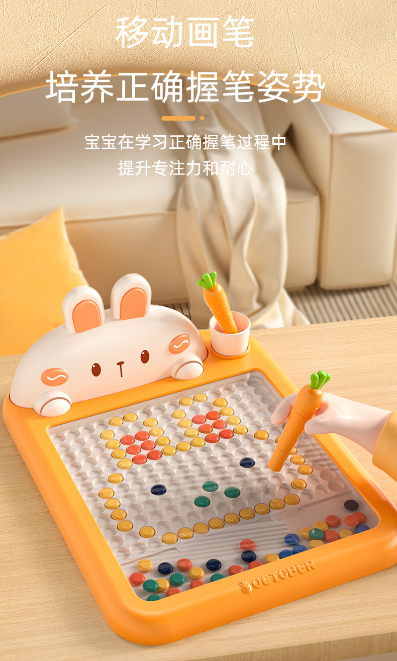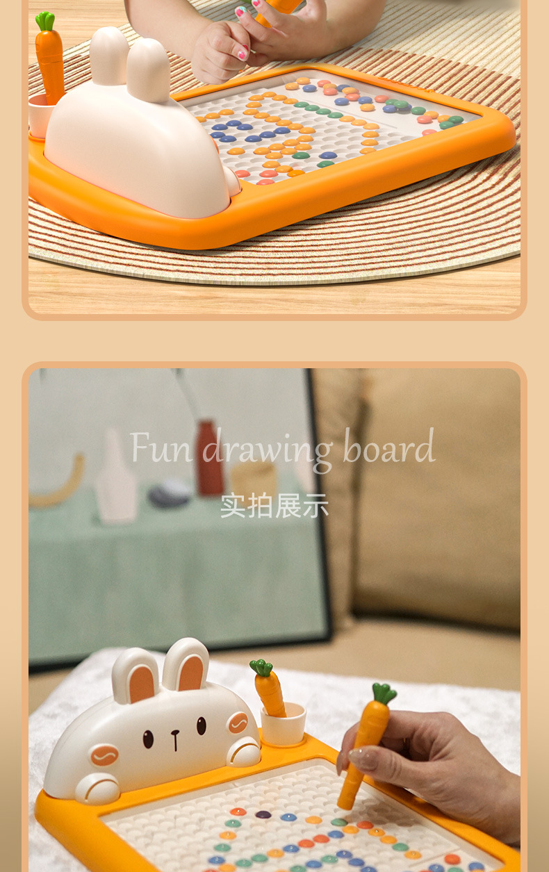 • 토끼 자석 드로잉 보드 대형 [당근 펜 2개 + 드로잉 카드 10개 + 구슬 70개] 중국 색상 상자