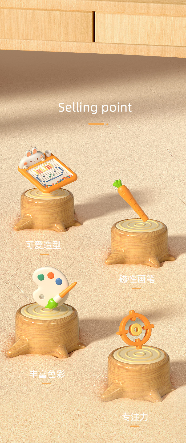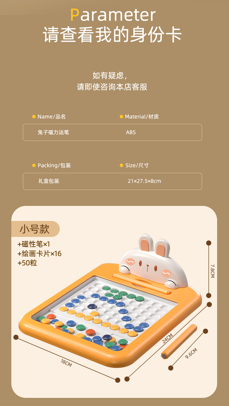 • 토끼 자기 드로잉 보드 소형 [자기 펜 1개 + 드로잉 카드 8개 + 구슬 50개] 전자상거래 상자